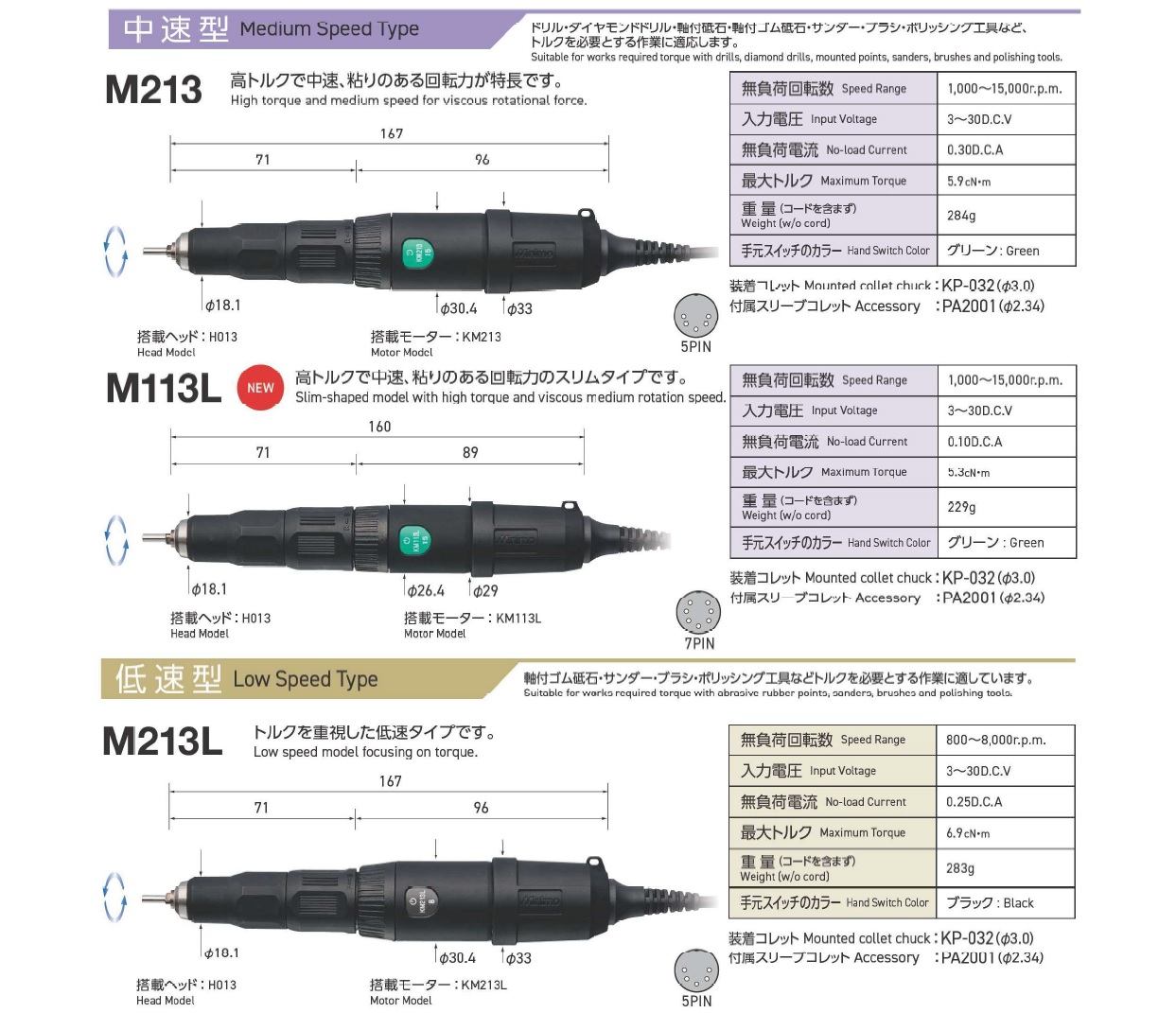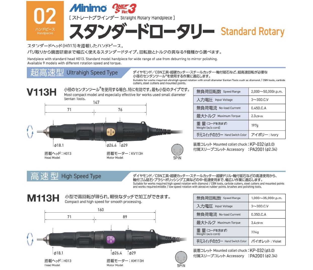 Minimo Standard Rotary, Straight Rotary Handpiece, High Speed type, Medium Speed Type, Low Speed Type, Low Speed Geared Type, Ultrahigh Speed Type