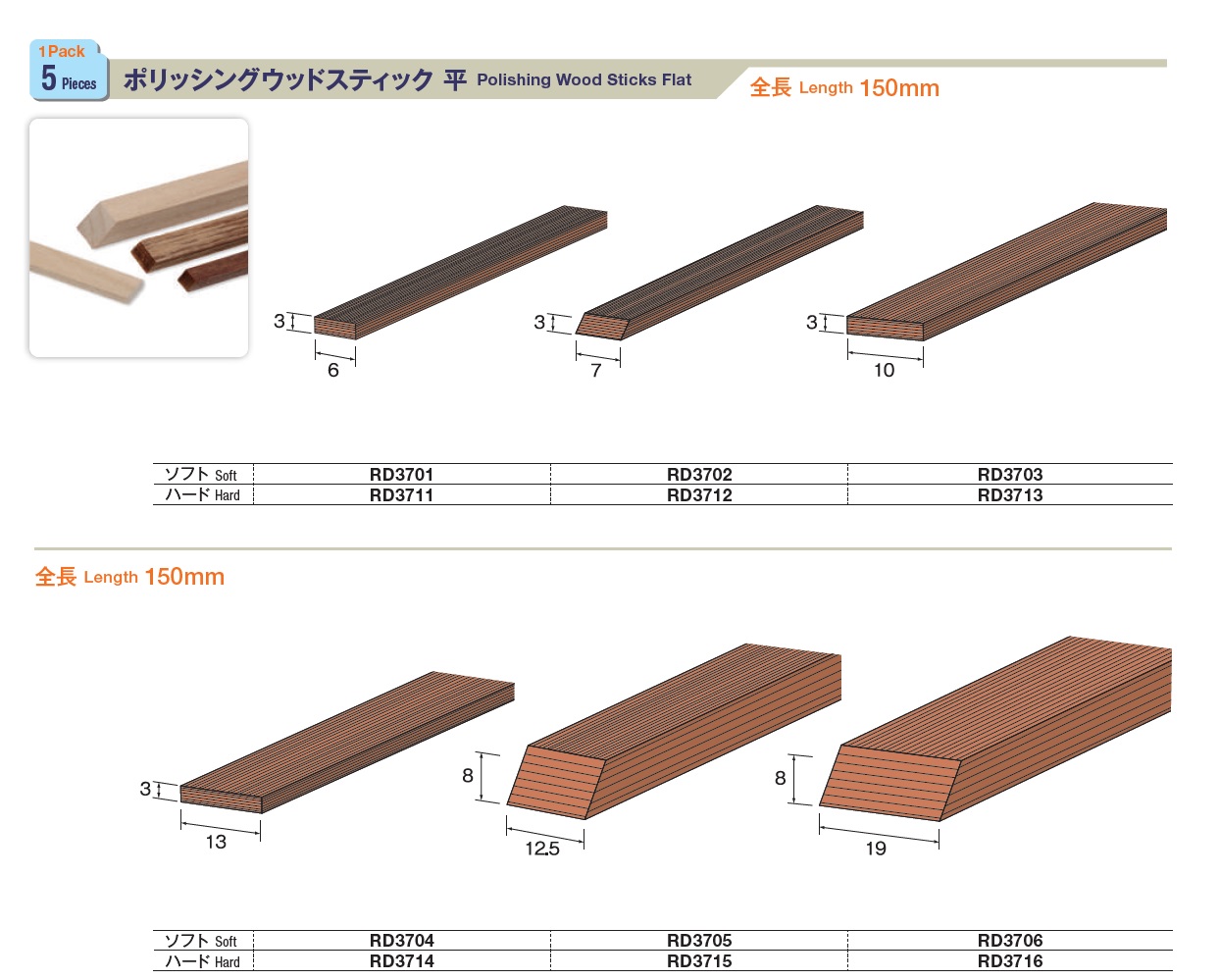 Minimo Hand Tools - Polishing Sticks, Polishing Wood Sticks Flat, Polishing Wood Sticks Square, Polishing Wood Sticks Round