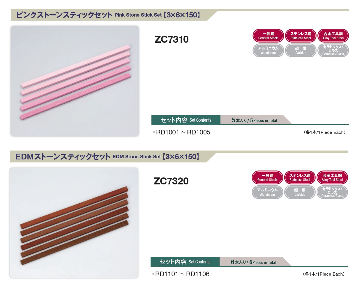 Minimo Pink Stone Stick Set, EDM Stone Stick Set, Blue Stone Stick Set, Carbon Stone Stick Set, Green Stone Stick Set, Soft Touch Stone Stick Set, Resinold Bonded Stone Stick Set, Finish Stone Stick Set, Polishing Stone Stick Set