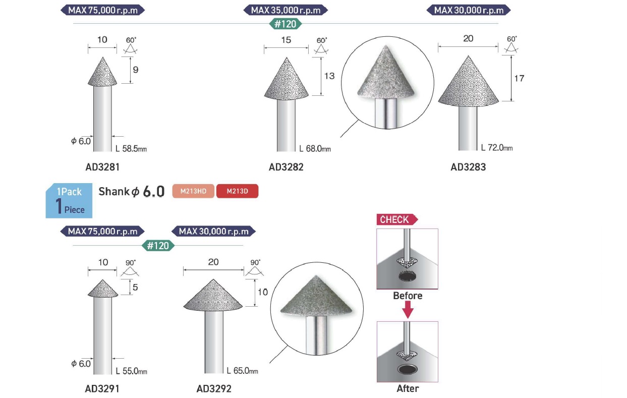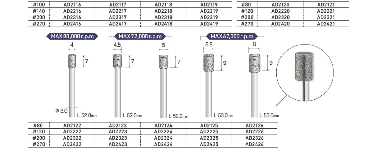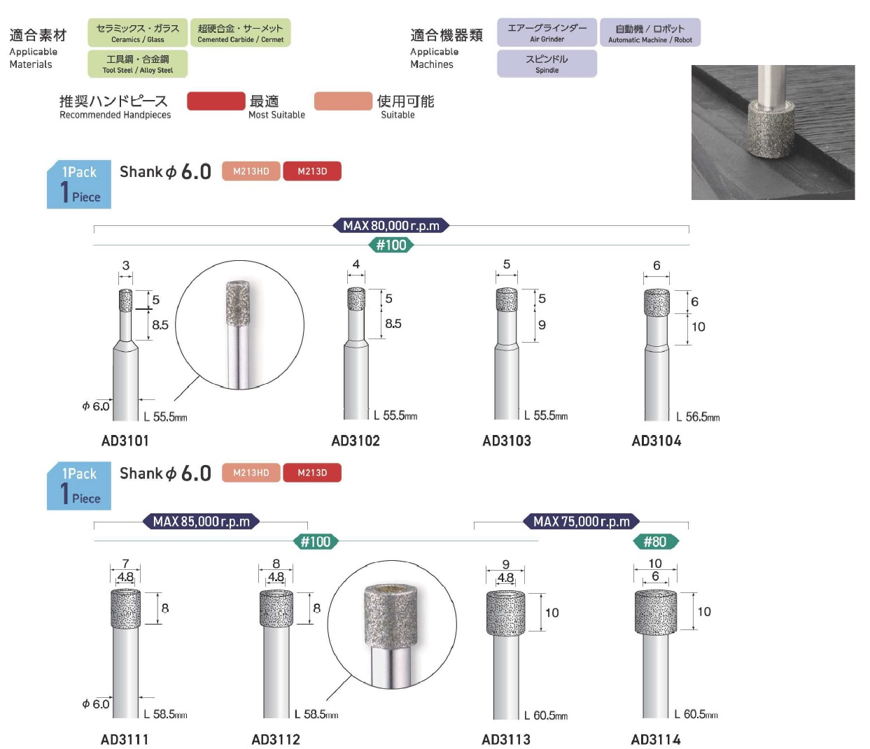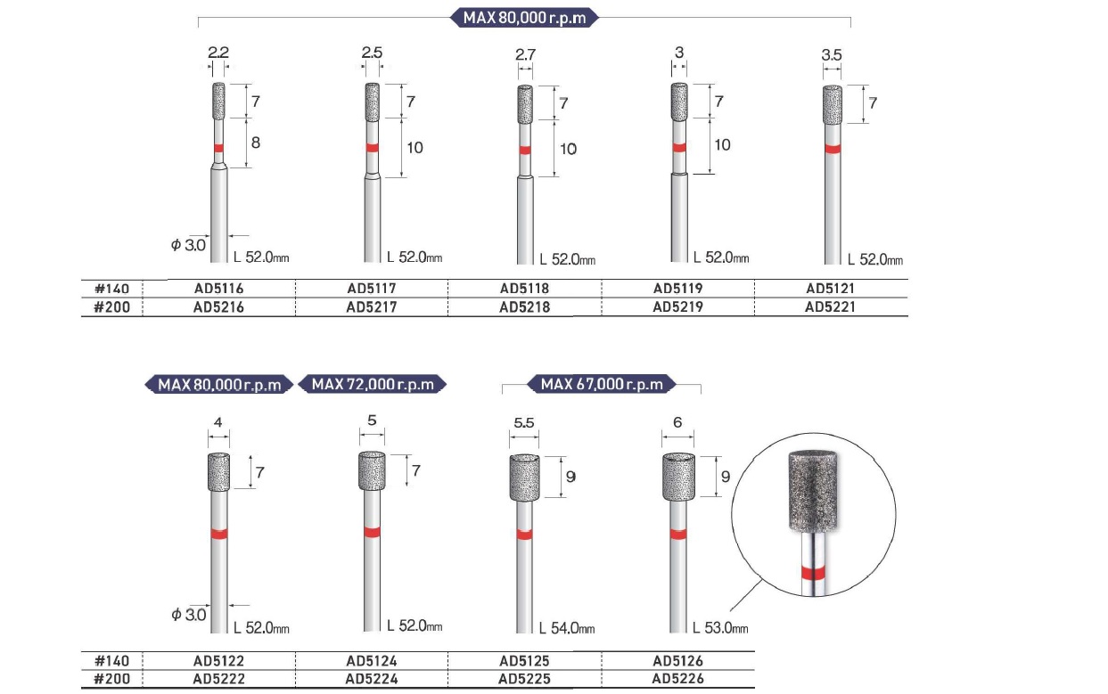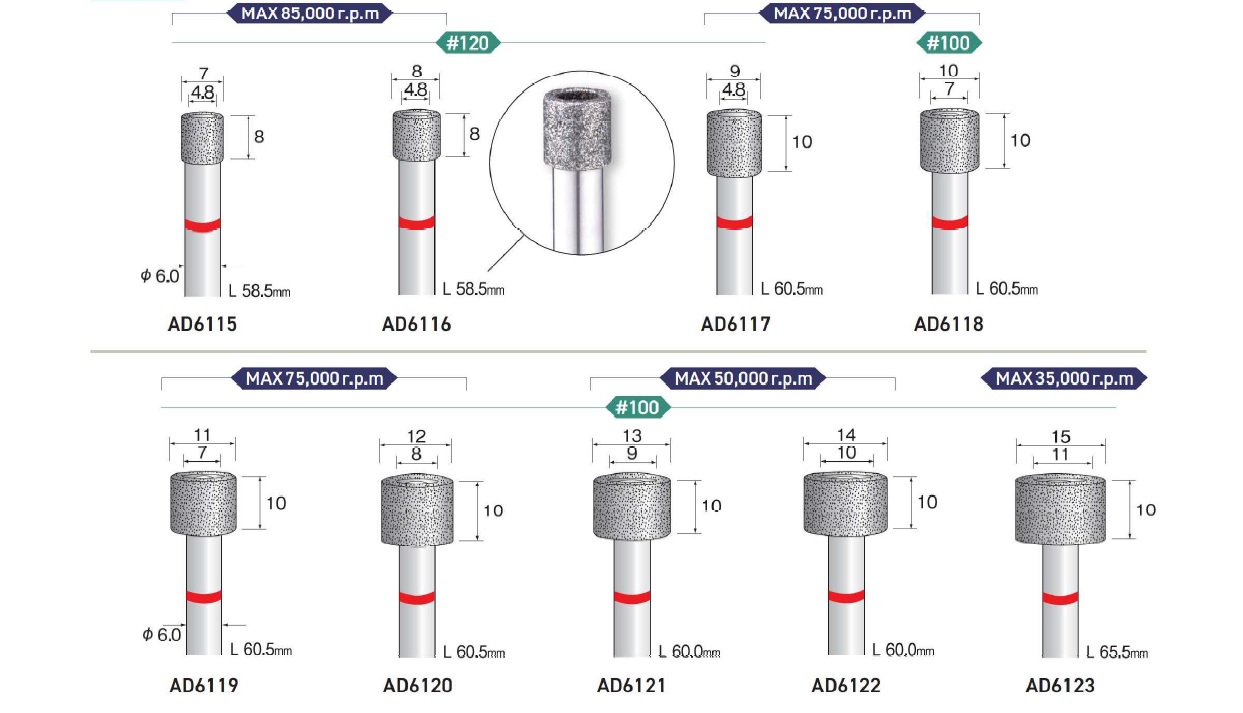 Minimo Diamond Plated Points, Shank, Sintered Diamond Points, Special Resin Diamond Points, Diamond Rubber Point, CBN Plated Points