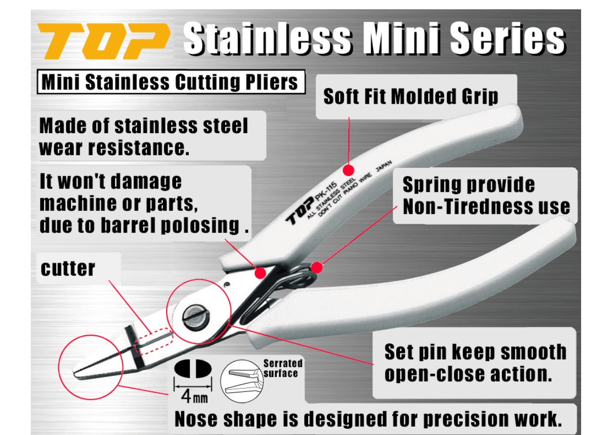 Top Tools Stainless Flat Nose Cutting Pliers, Mini Flat Nose Cutting Plier
