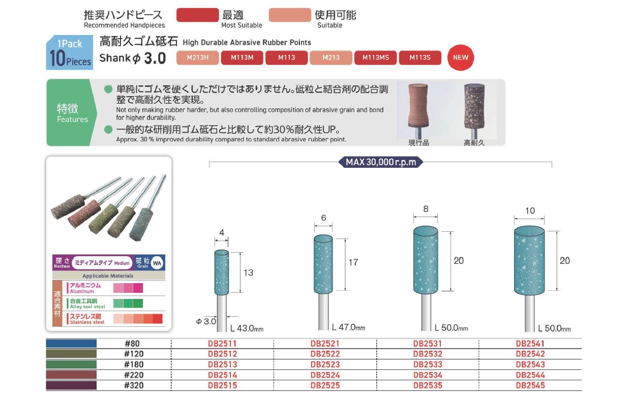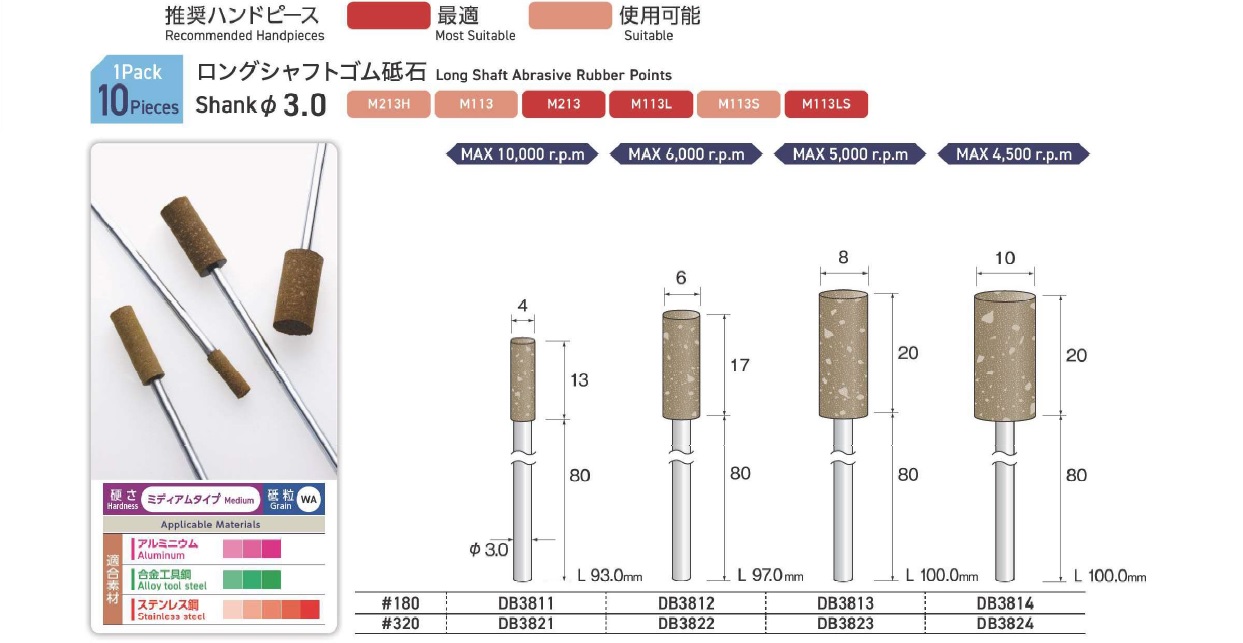 Minimo Abrasive Rubber Points for Polishing, Shank, Diamond Rubber Point, Abrasive Rubber Points for Grinding