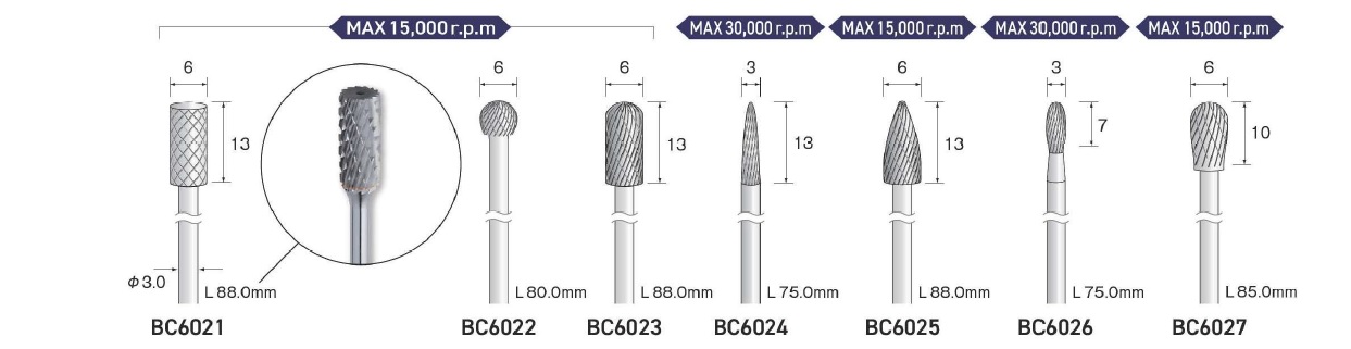 Minimo Carbide Cutters, CB Cutters, Long Shaft Carbide, Ceramic Cutter, CuttersSpiral cut, Spiral chip breaker cut, Straight cut, Cross cut, Fine cross cut, Reamer, Grooved cross cut, Shine cutter, Aluminium cut, Micro cut, Ceramic cutter