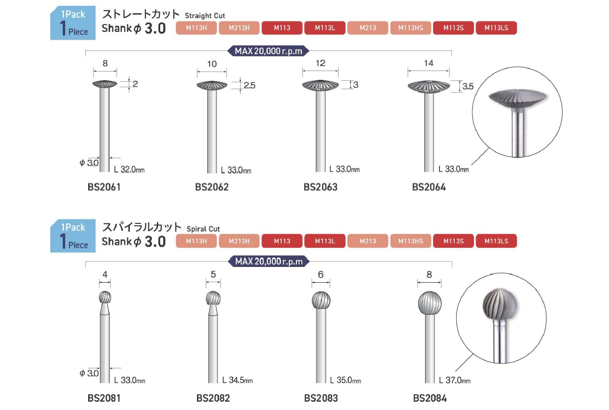 Minimo Steel Cutters, High Speed Steel Cutters, Straight chip breaker cut, Straight cut, Spiral cut, Smooth cutter for resin, For Non-metal (For finish), For Non-metal (For rough), For Resin (Clipping)
