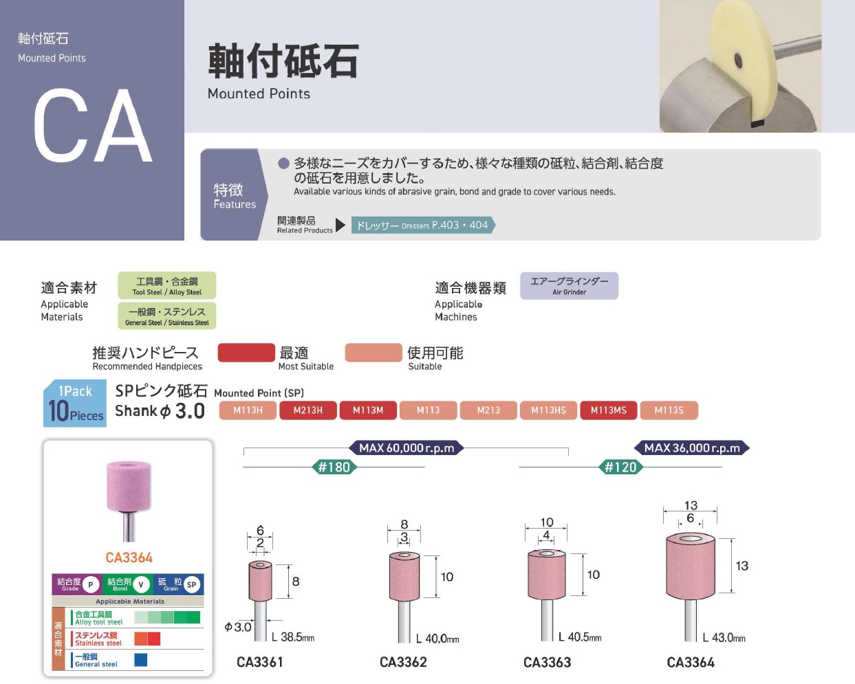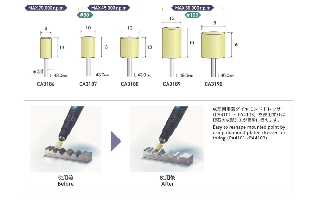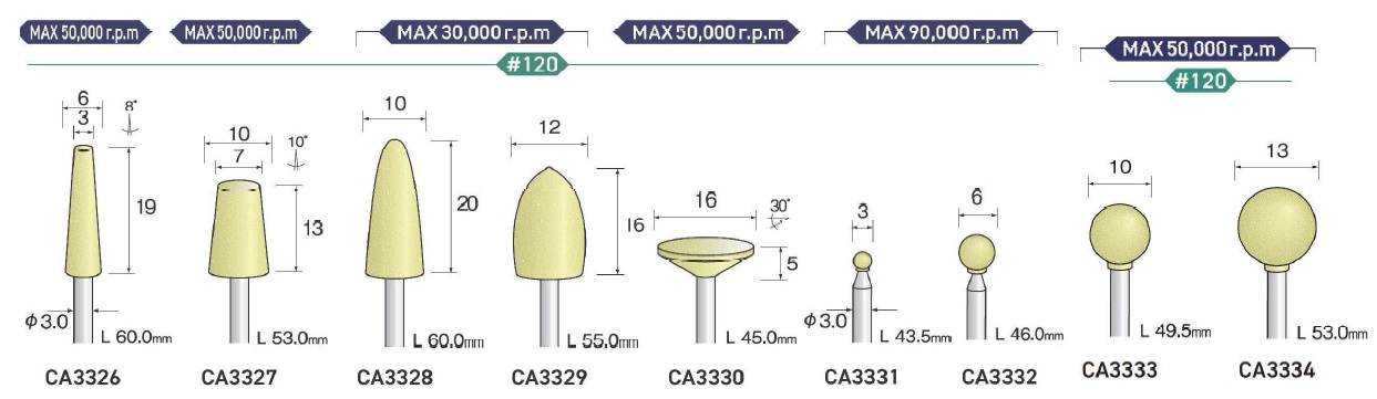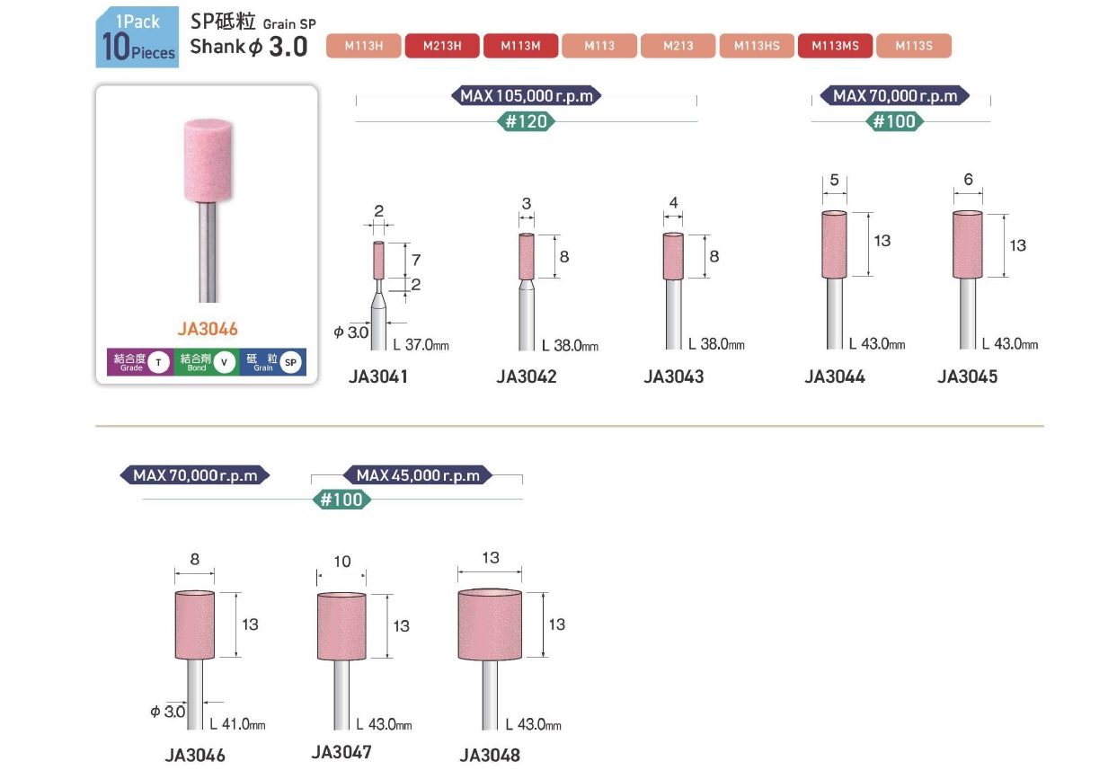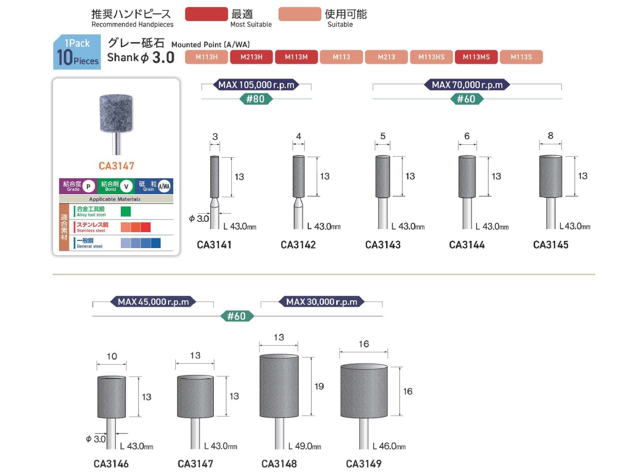 Minimo Mounted Points, Mounted Point(SPH), Mounted Point(PA), Mounted Point(GC), Mounted Point(A), Mounted Point(A/WA), Mounted Point(SPH), Grain SP, Mounted Point(SA), Long Shaft Mounted Point(WA)