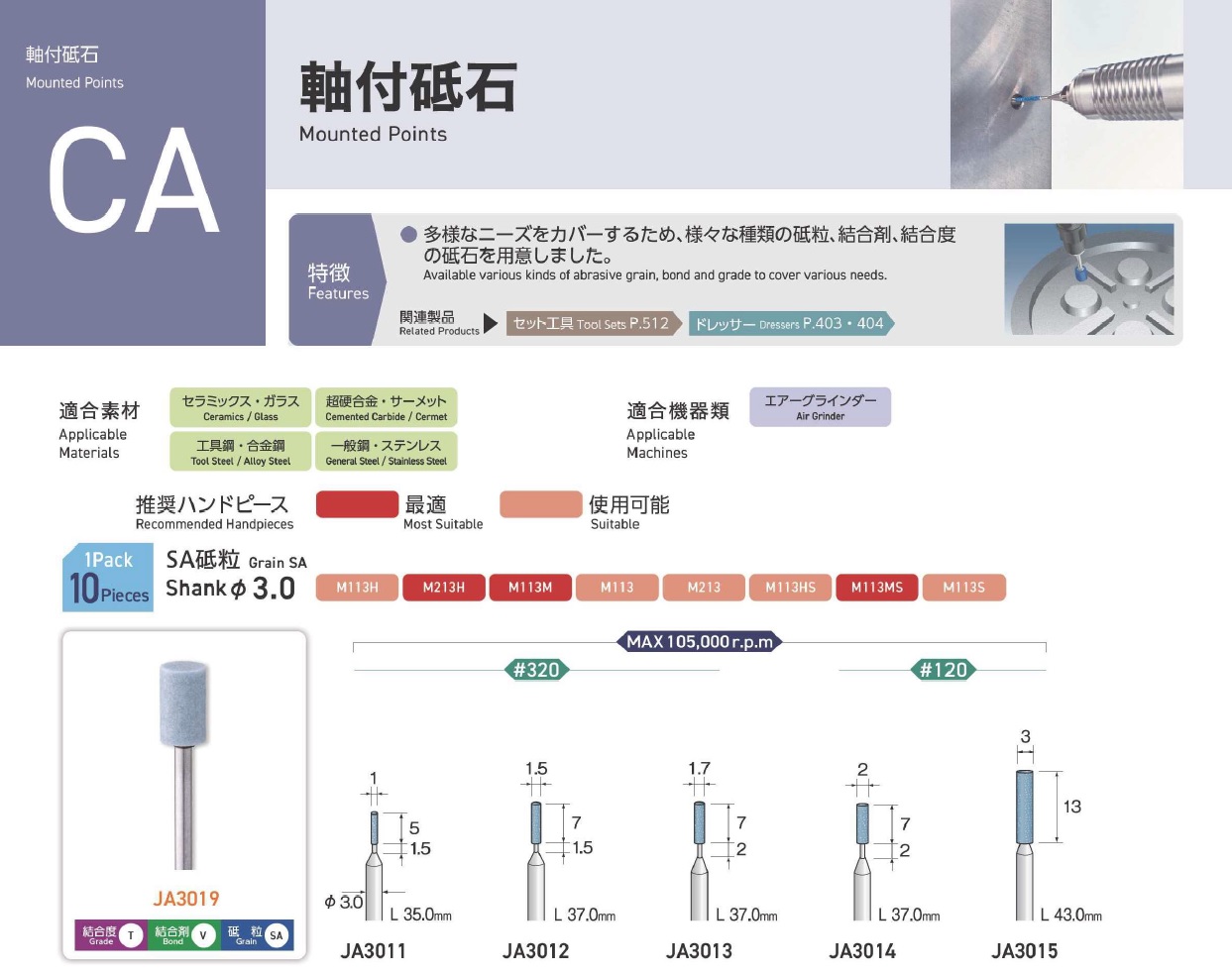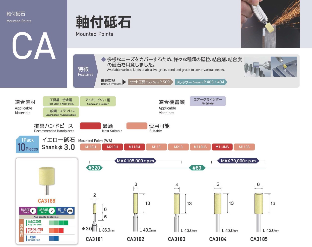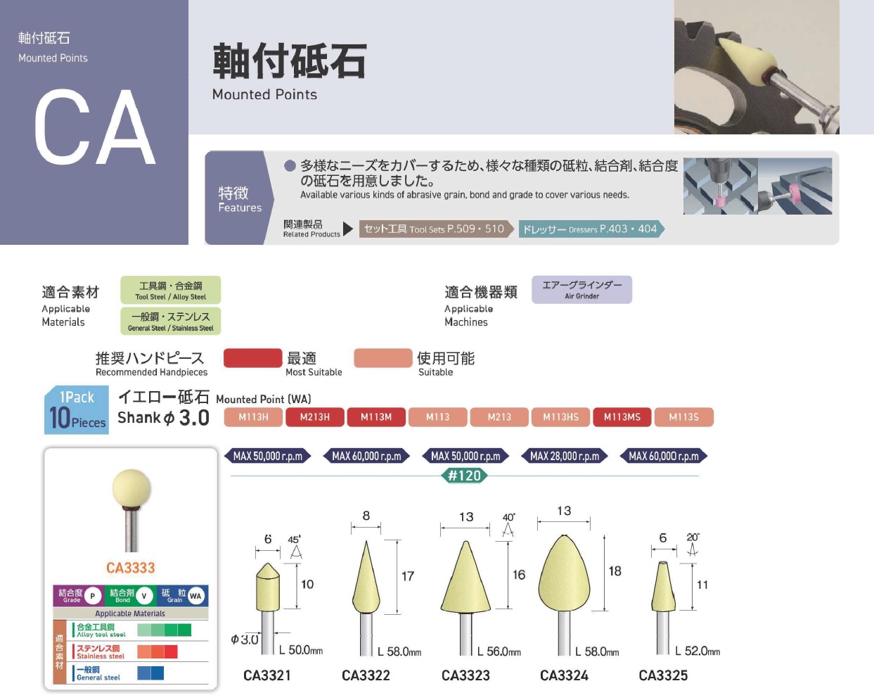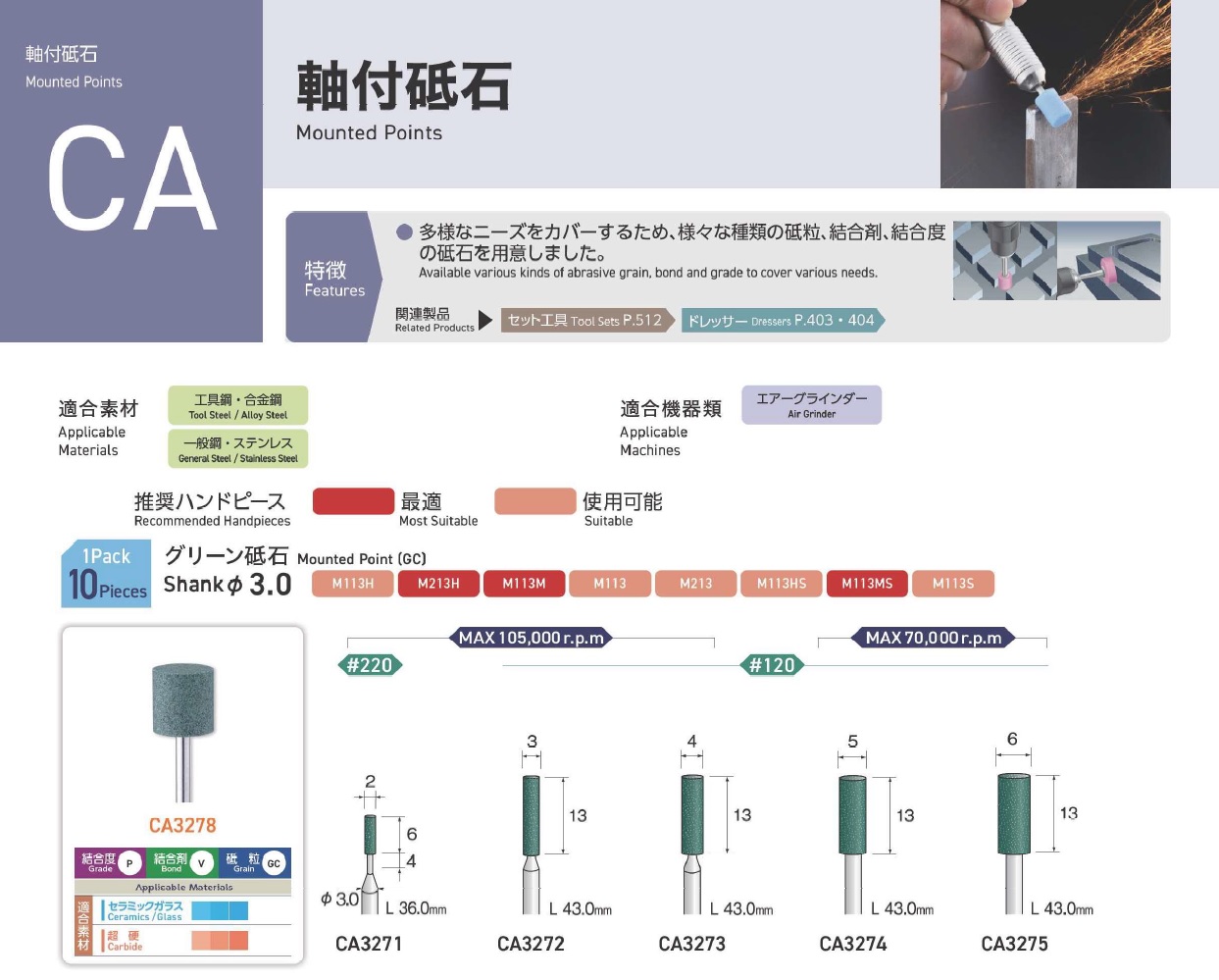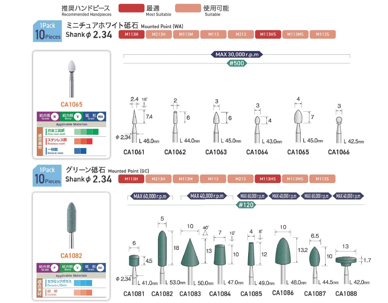 Minimo Mounted Points, Mounted Point(SPH), Mounted Point(PA), Mounted Point(GC), Mounted Point(A), Mounted Point(A/WA), Mounted Point(SPH), Grain SP, Mounted Point(SA), Long Shaft Mounted Point(WA)