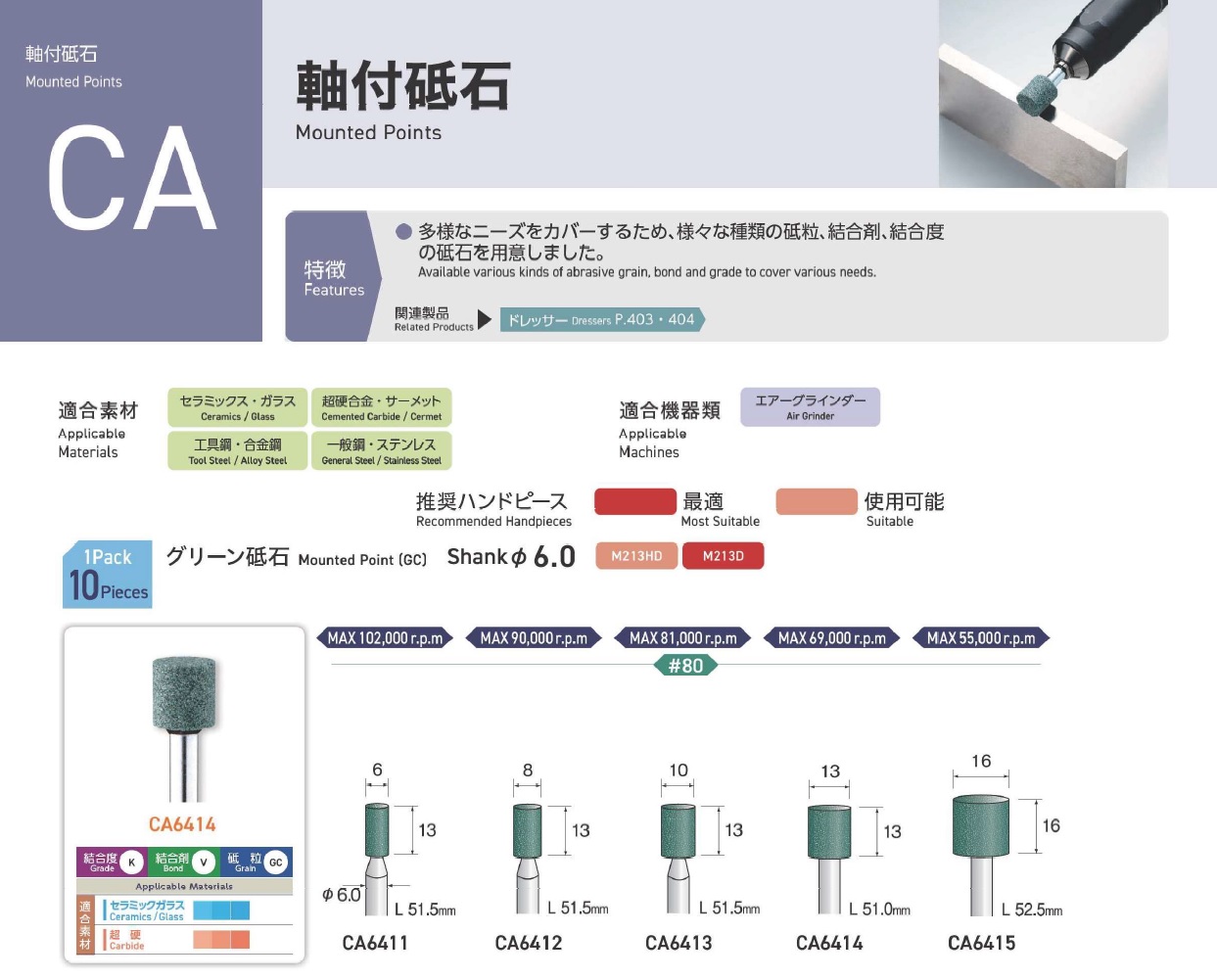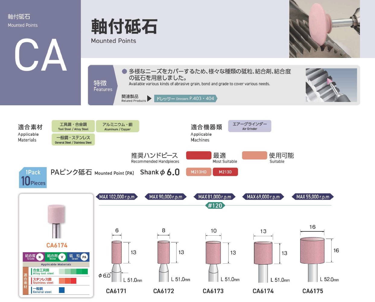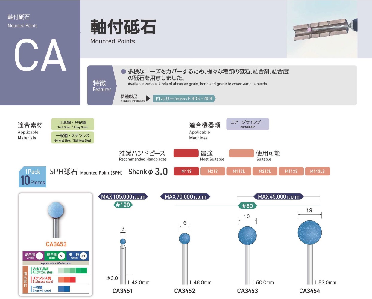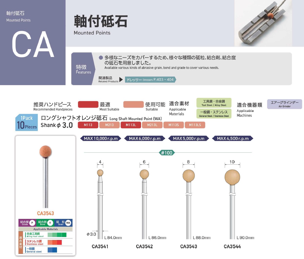 Minimo Mounted Points, Mounted Point(SPH), Mounted Point(PA), Mounted Point(GC), Mounted Point(A), Mounted Point(A/WA), Mounted Point(SPH), Grain SP, Mounted Point(SA), Long Shaft Mounted Point(WA)