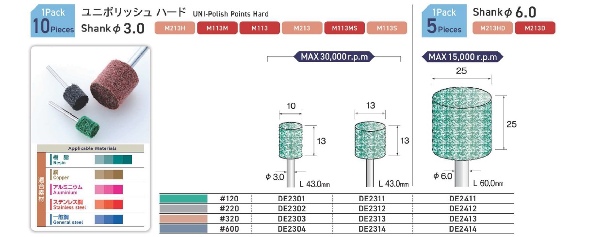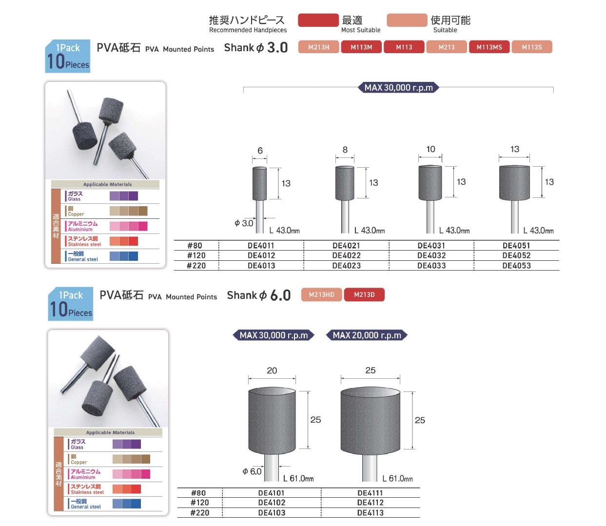 Minimo FR Mounted Points, UNI-Polish Points Medium, PVA Mounted Points