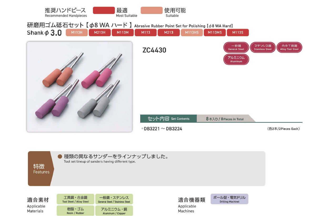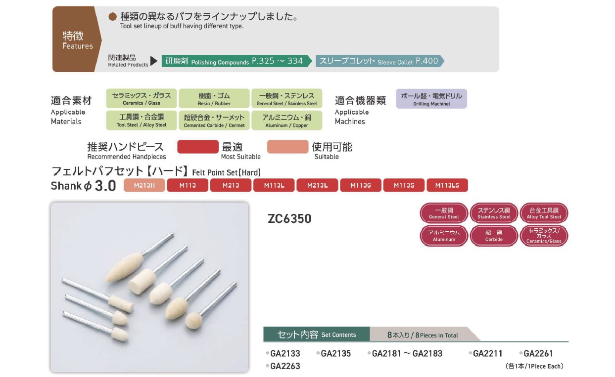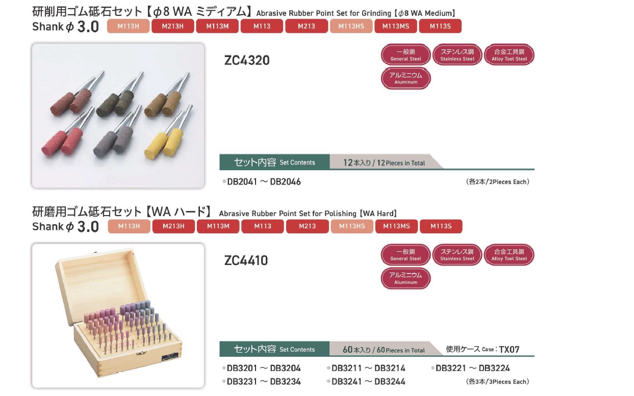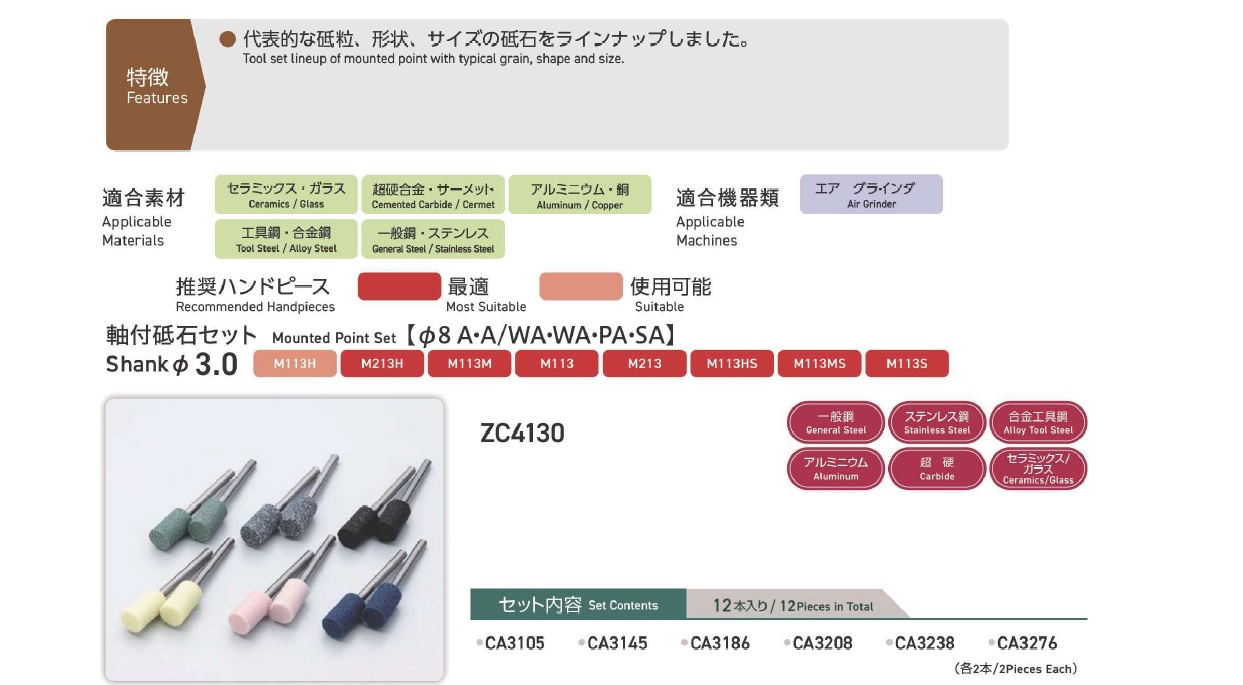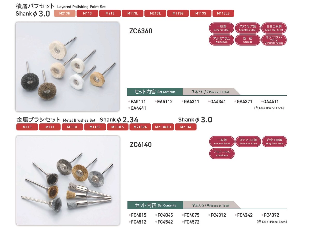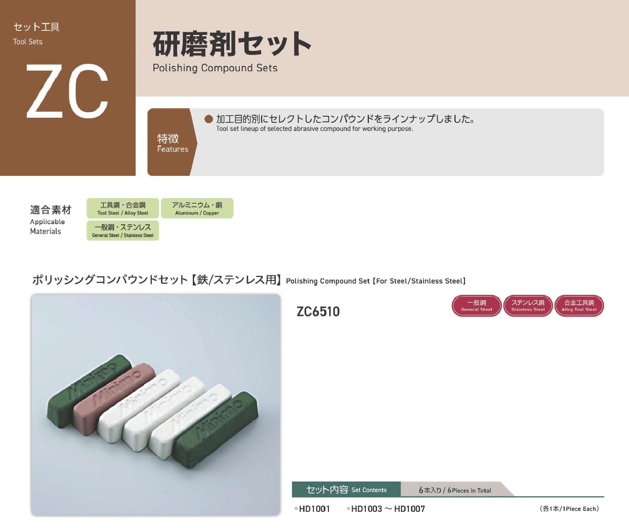 Minimo Best Selection Sets, Grinder Tool Sets, Polishing Compound Sets, Hand Tool Sets, Wheel Tool Sets, Abrasive Rubber Wheel Set, Rubber Brush Wheel Set, UNI-Polish Wheel Set, Abrasive Cotton Wheel Set, Felt Wheel Set, Best Selection Sets, Trial Tool Set, Electronics Industry Tool Set, Metal Processing Tool Set, Jewelry / Carving Processing Tool Set, Starter Tool Set, Tool Set for physical, Chemical and Medical Laboratory, Trial Tool Set for Deburring, Tool Set for Rust Removing, Buff Tool Set for Polishing, Cutting Tool Set for Resin, Cutting Tool Set for Light Metal, Mounted Point Set for Grinding Ceramics and Cemented Carbide, Tool Set for Molding Stainless Surface, Tool Set for Aluminum Working, Tool Set for Wood Working, Tool Set for Metal Mold Maintenance, Polishing Stick Set for Metal Mold, Grinder Tool Sets, Diamond Plated Point Set, CBN Plated Point Set, Carbide Cutter Set (Cross Cut), Steel Cutter Set (For Wood&Resin), Mounted Point Set ( WA), Mounted Point Set (GC), Mounted Point Set ( φ8 A・A/WA・WA・PA・SA) , Abrasive Rubber Point Set for Grinding (WA Medium), Abrasive Rubber Point Set for Polishing (φ8 GC Medium), Abrasive Rubber Point Set for Polishing (WA Hard), Abrasive Rubber Point Set for Polishing (φ8 WA Medium), FR Mounted Point Set ( φ10 GC), UNI-Polish Point Hard Set ( φ10 A・C), Ultra Hard Rubber Point Set (φ10 GC), Radial Sander Set (φ25), Cushion Sander Set ( φ25), Cotton Sander Set (φ25), Coated Abrasive Roll Set, Coated Abrasive Cone Set, Abrasive Drum Sander Set, Abrasive Cap Sander Set, Bristle Brush Set, Bristle Brush Set, Metal Brush Set, Polishing Tool Set, Felt Point Set (Soft), Polishing Compound Sets, Polishing Compound Set (For Steel/Stainless Steel), Polishing Compound Set (For Aluminium), Polishing Compound Set (For Copper/Brass), Anglon Tool Sets, Grinding/Polishing Disc Set, Zirconia Disc Set, Cushion Disc Set, Ceramic Rubber Disc Set(For Metal), Hand Tool Sets, Pink Stone Stick Set, EDM Stone Stick Set, Blue Stone Stick Set, Soft Touch Stone Stick Set, Resinoid Bonded Stone Stick Set, Finish Stone Stick Set, Carbon Stone Stick Set, Green Stone Stick Set, Polishing Stone Stick Set, Precision Grinding Tool Sets, Vitrified Bonded Diamond Point Set, Vitrified Bonded CBN Point Set, Precision Mounted Point Grain WA Set, Abrasive Rubber Wheel Set, Rubber Brush Wheel Set, UNI-Polish Wheel Set, Abrasive Cotton Wheel Set, Felt Wheel Set
