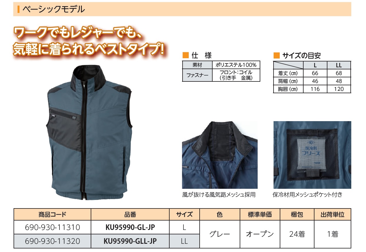 Jappy Water Filling Vest Bodycool, Fan-compatible wear, air-conditioned Fujin Clothing, Clean Mell, Work Fan Mountable Wear, Work Air Conditioning Clothes