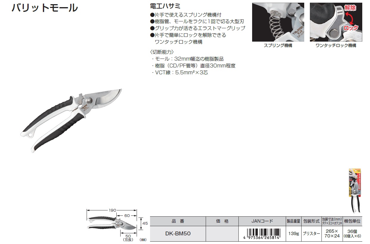 Tajima Plastic Tube Cutting Scissors, Electric Work Cable Cutting, Tape Cutting Scissors, Insulation Cutting Scissors