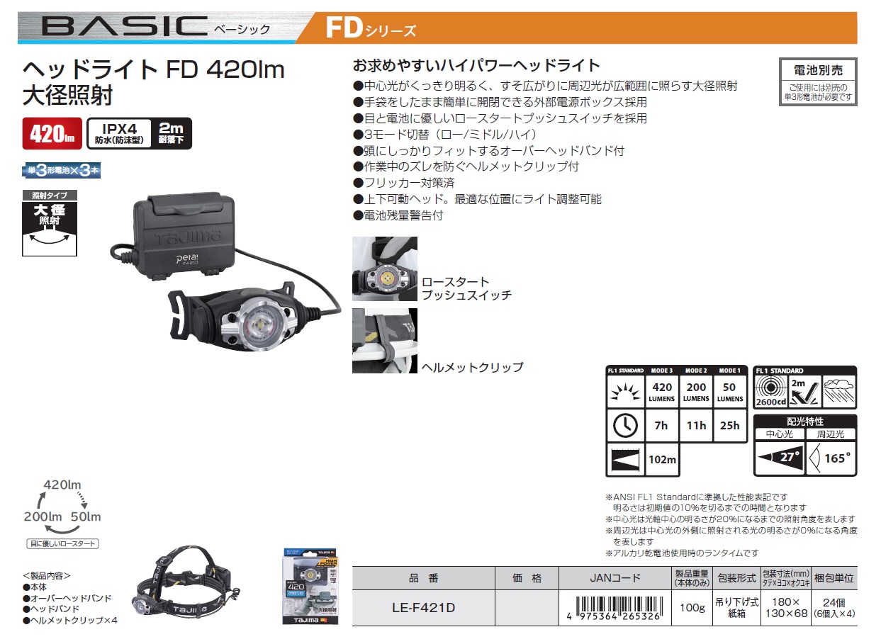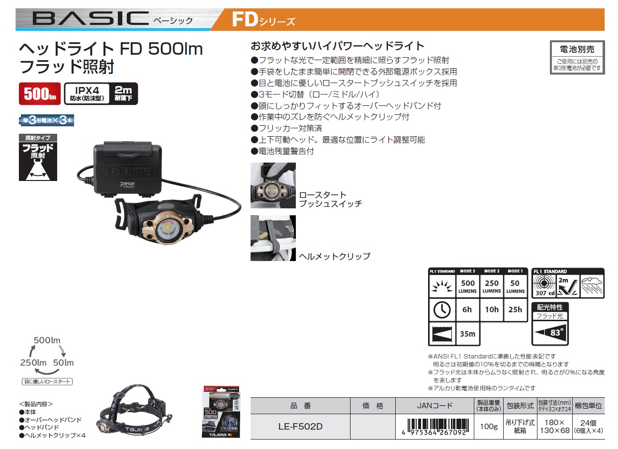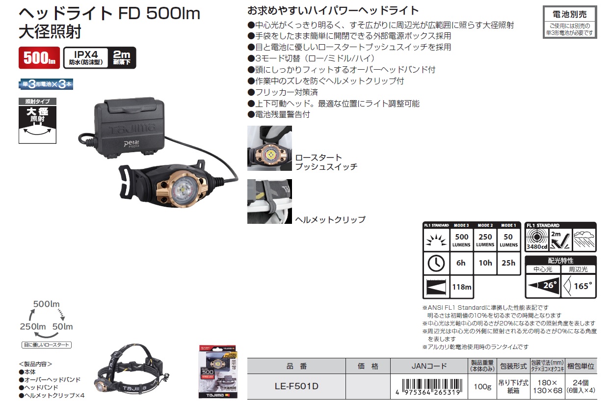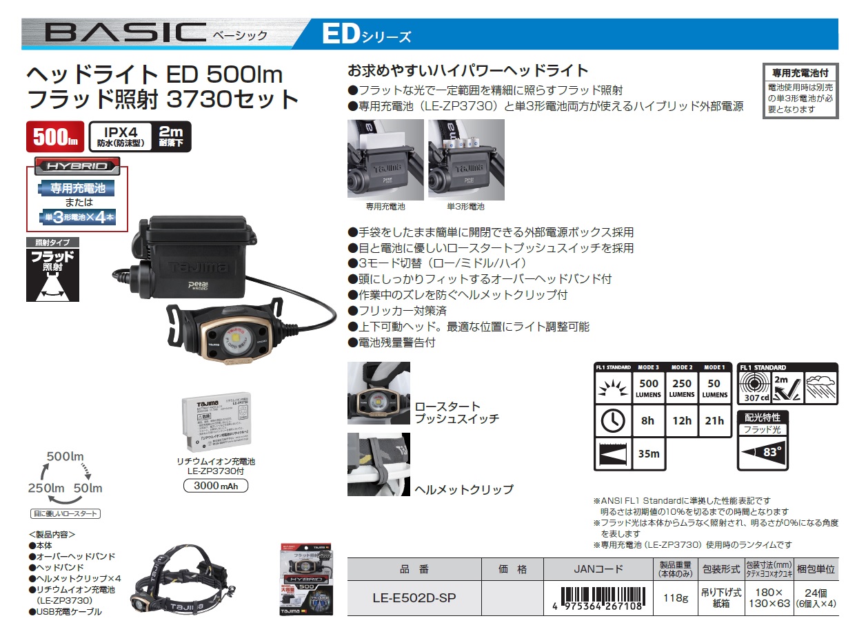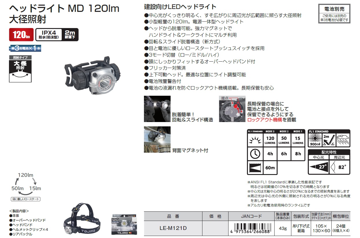 Tajima LED Headlight, Rechargeable Battery, AC adapter, USB Charging Cable, Lithium-ion Battery