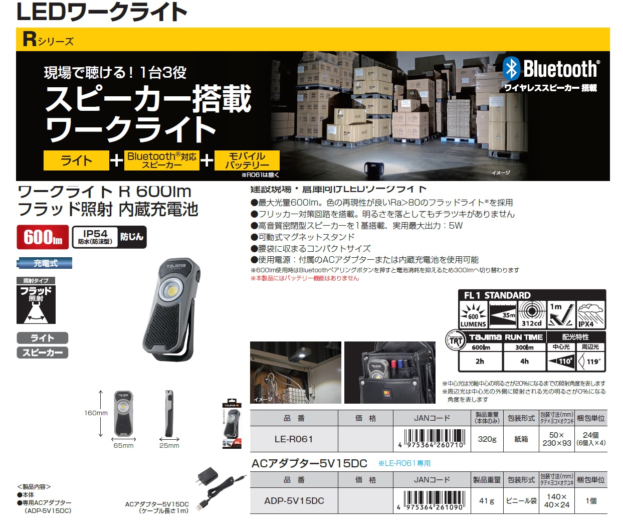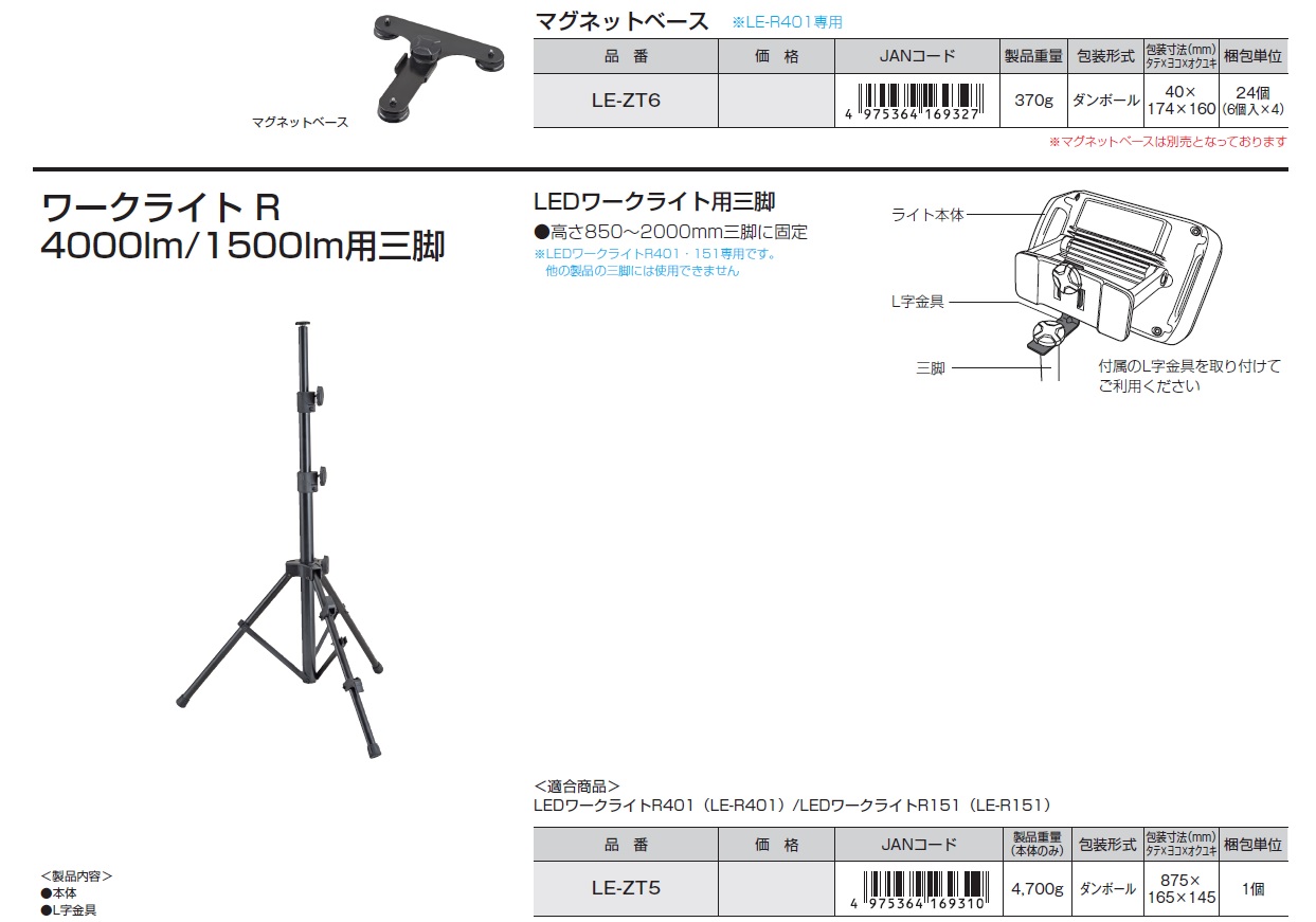Tajima LED Work Lights, AC adapter, Magnetic Base, USB Charging Cable, LED Work Light Tripod
