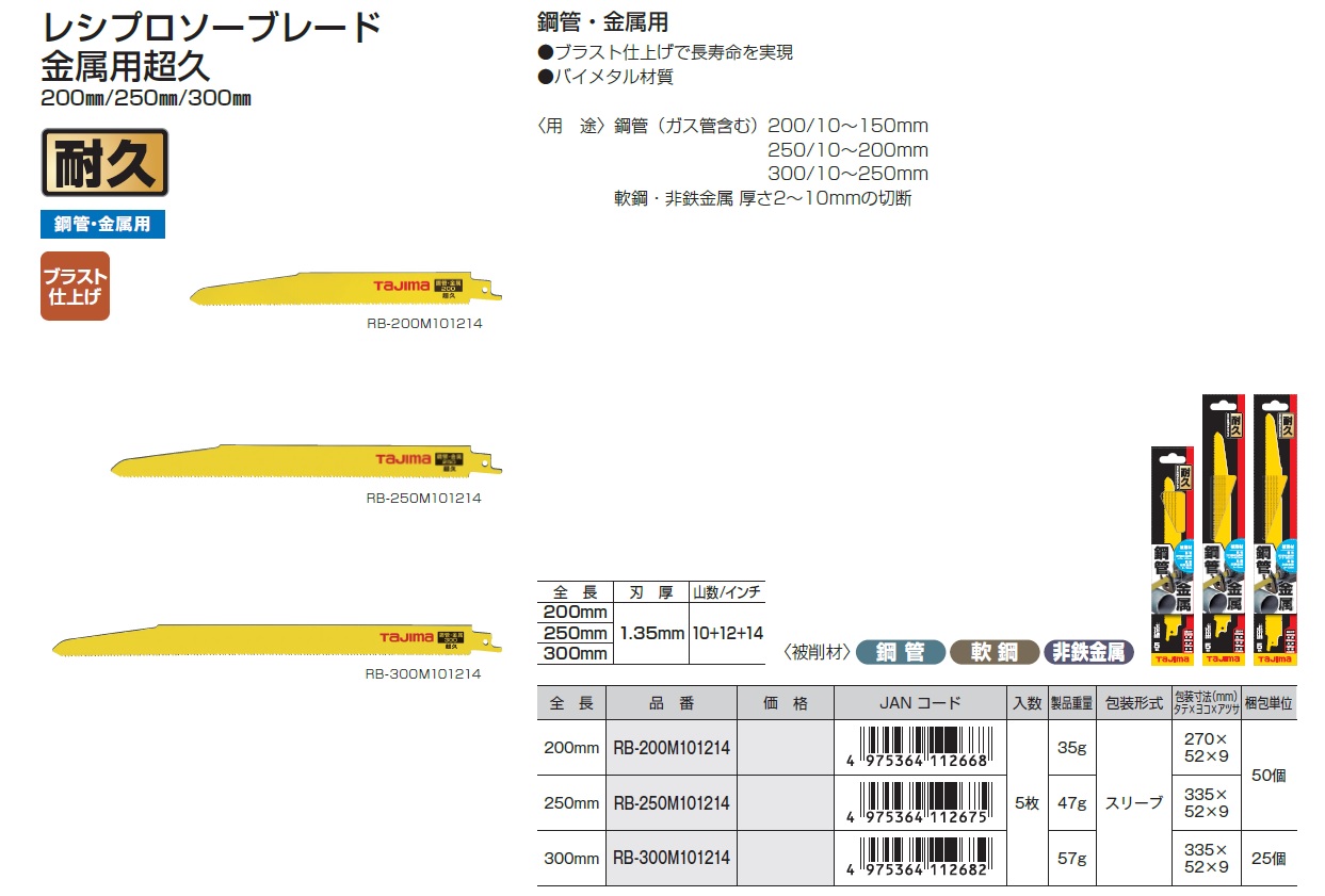 Code : RB-200D612P, RB-225D810, RB-225M1418, RB-200M101214, RB-250M101214, RB-300M101214 Brand : Tajima
