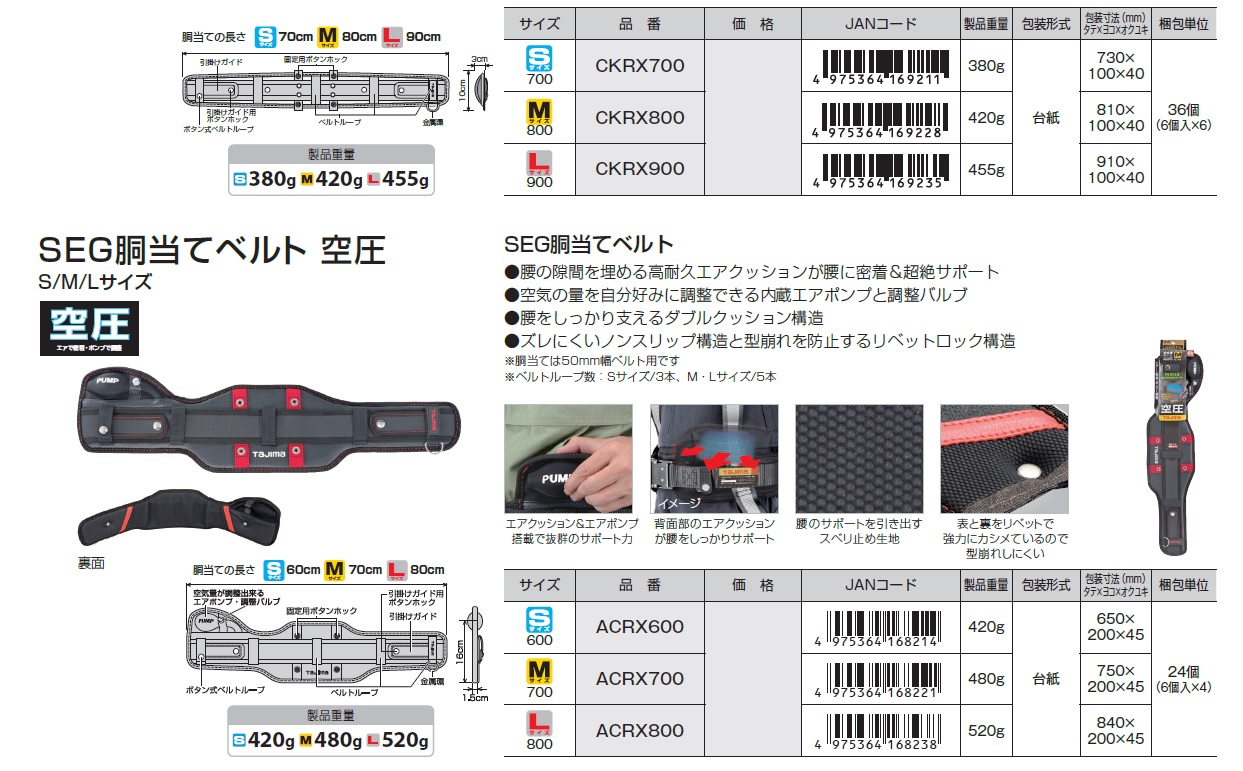 Tajima SEG Support Work Belt, Safety Support Waist Belt Hanger, Support Belt Air Pump Adjust