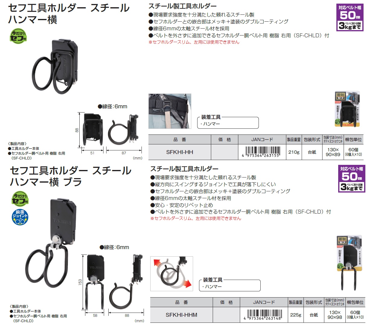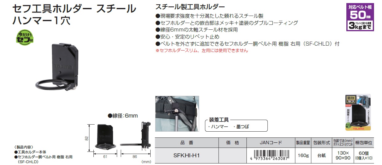 Tajima Safe System Safe Tool Holder, Steel Tool Holder, Tools Detachable Tool Holder Steel Hammer Holder, Removable Tool Holder, Steel Waist Tool Holder Hammer, Tool Holder High Strength Steel Hammer, Steel Tool Holder, Steel Waist Tool Holder Drift Pin, Ssfe Tool Holder Plastic Slim Carabiner