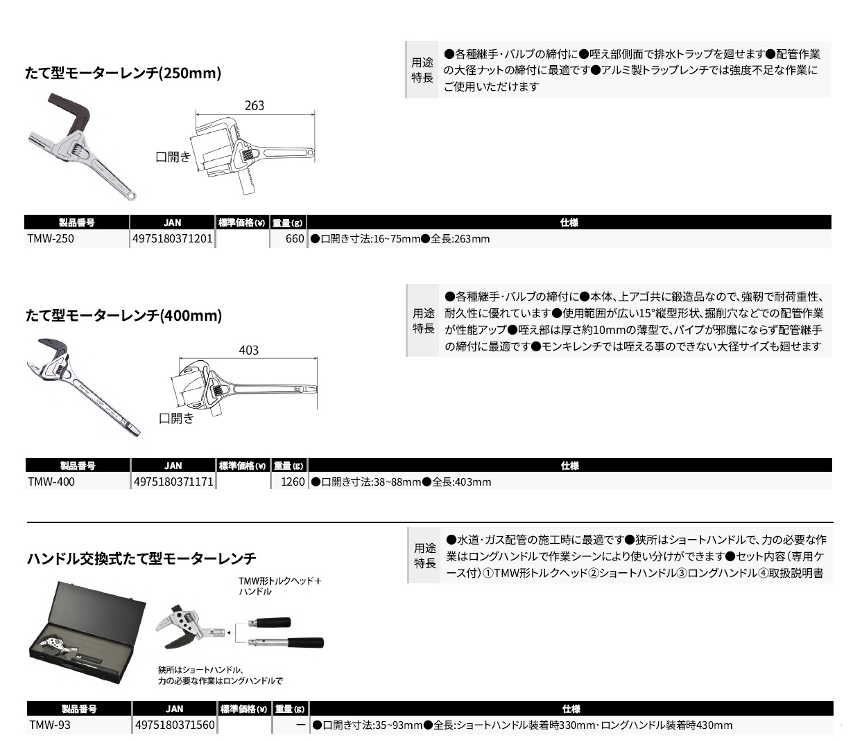 Code : TMW-250, TMW-400, TMW-93, TMW-1665, TMWS-1668 Brand : Top Tools