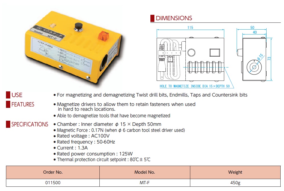 USE ● For magnetizing and demagnetizing Twist drill bits, Endmills, Taps and Countersink bits