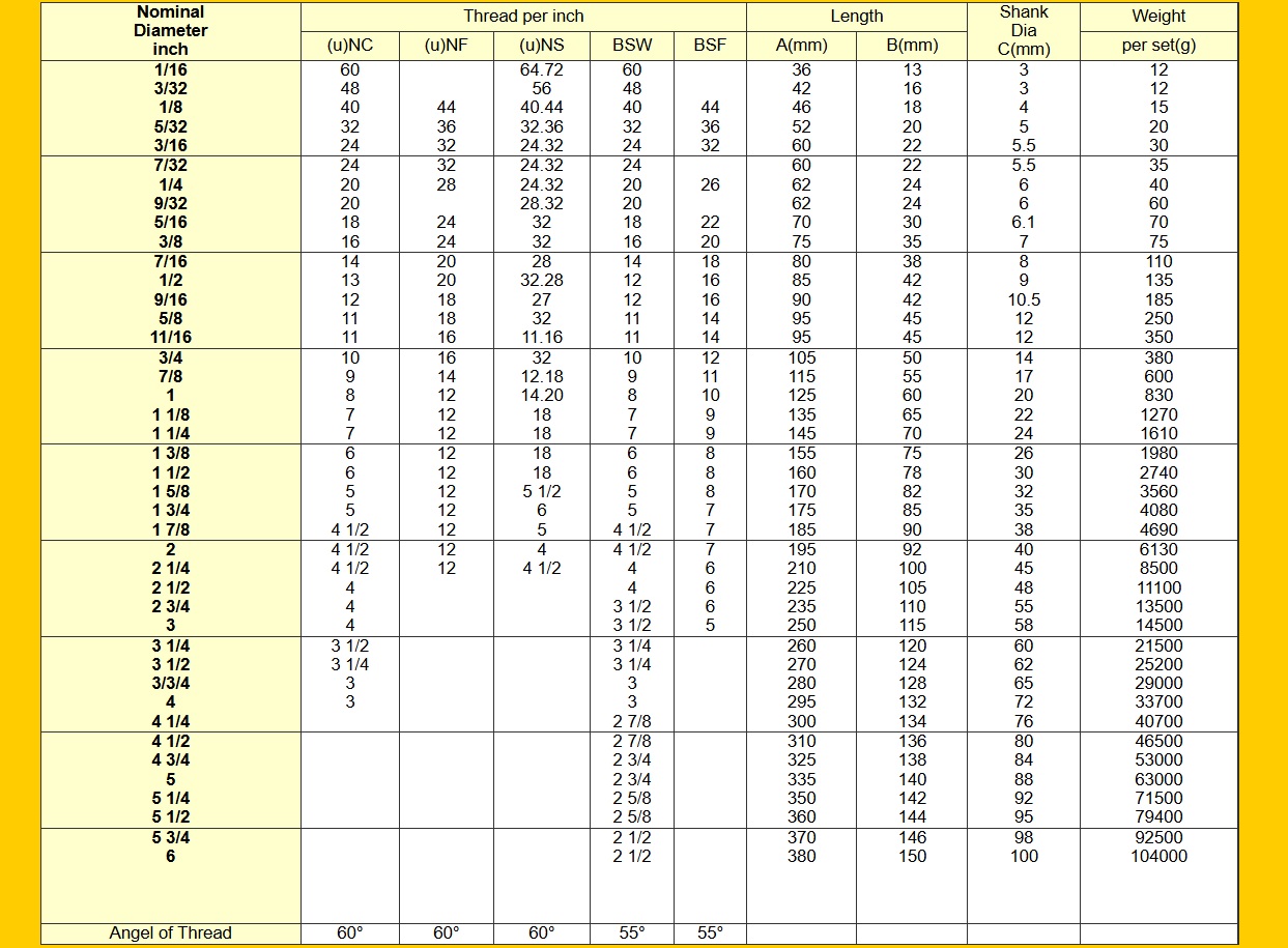 SKC HAND TAPS UNC. UNF. NS. BSW BSF