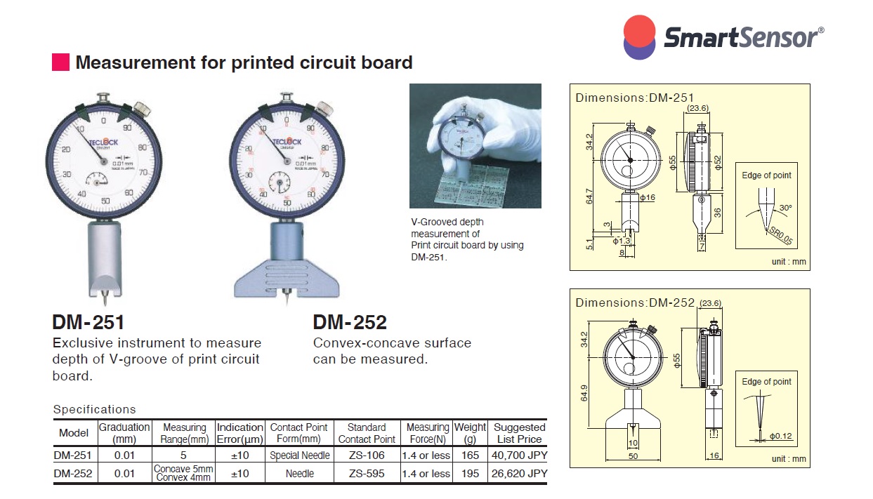 Teclock Dial Depth Gauges, Printed circuit board for measurement