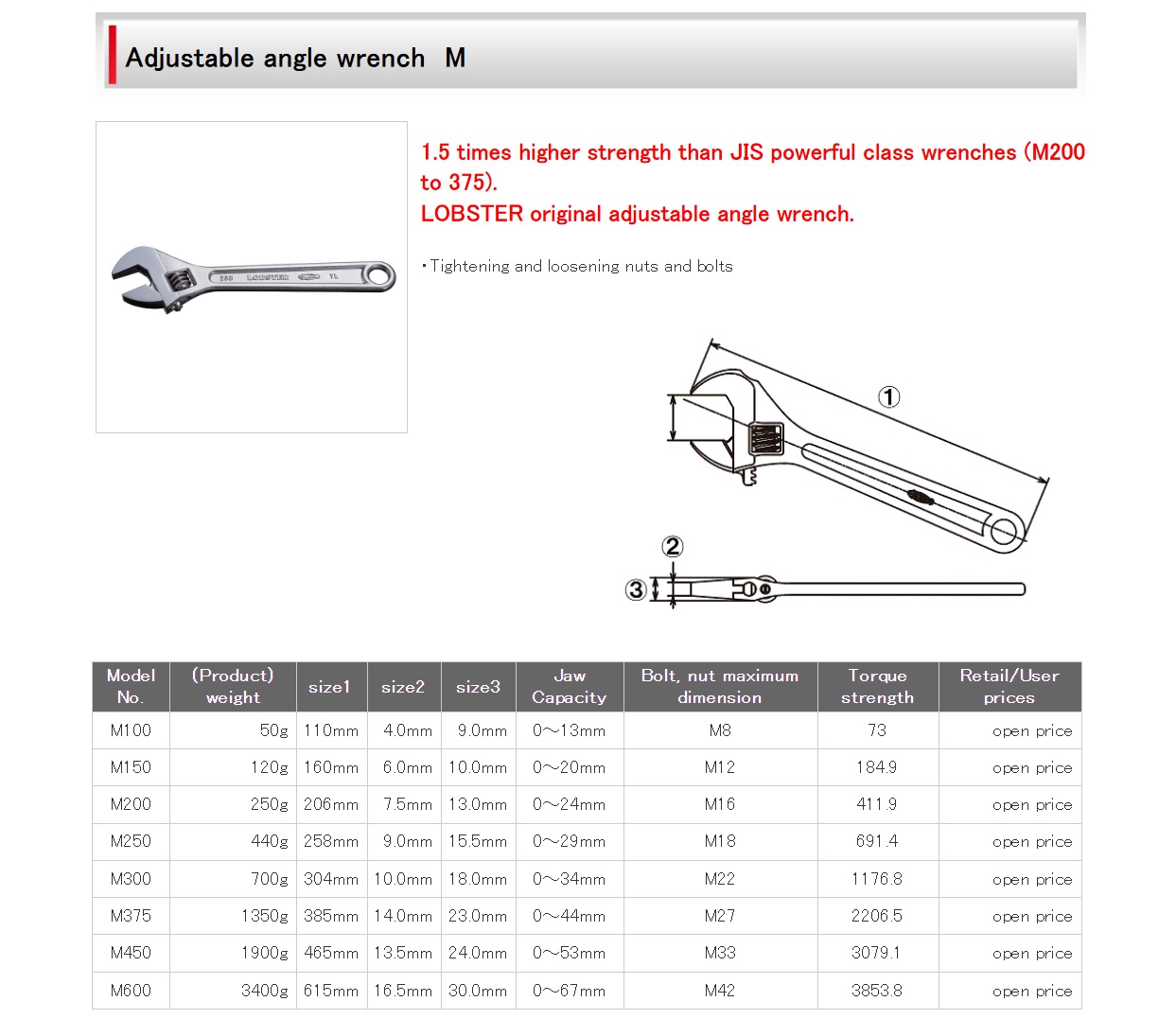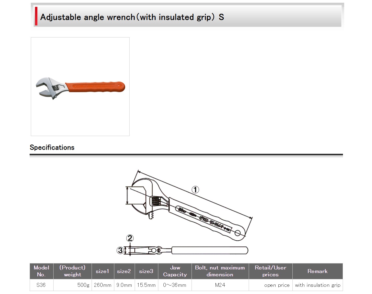 Lobster Adjustable angle wrench M, Adjustable angle wrench(With insulated grip)
