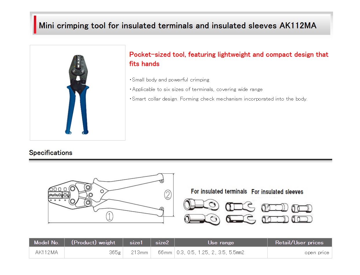 Lobster Mini Crimping Tool For Insulated Terminals and Insulated Sleeves