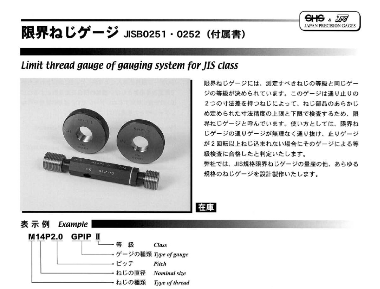 JPG Thread Plug Gauge - Limit Thread Gauge of Gauging System for JIS Class