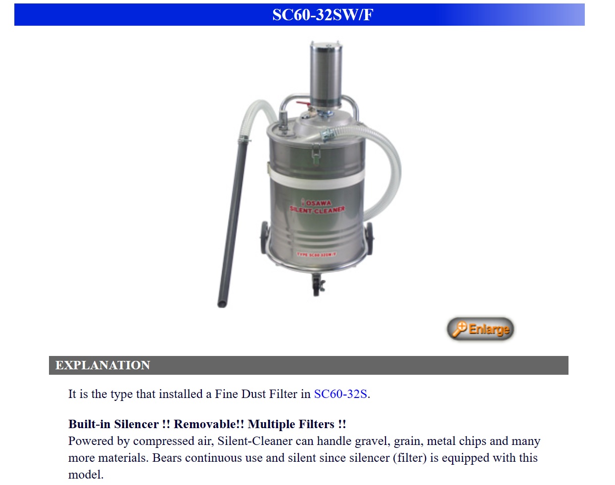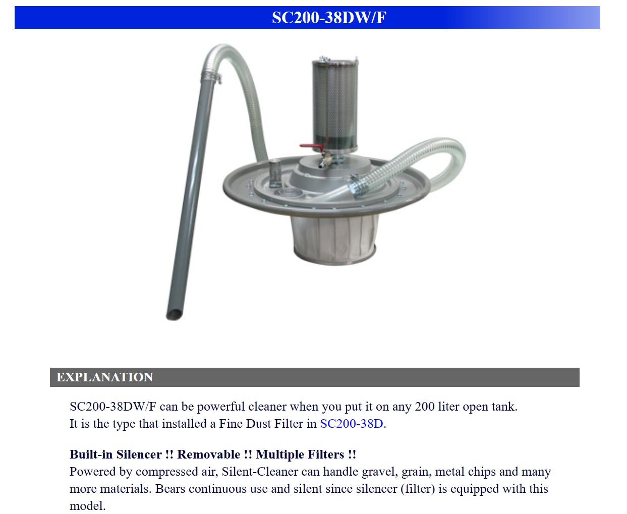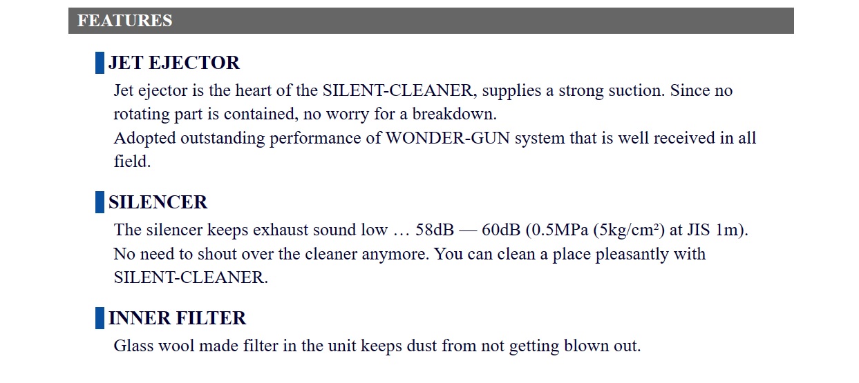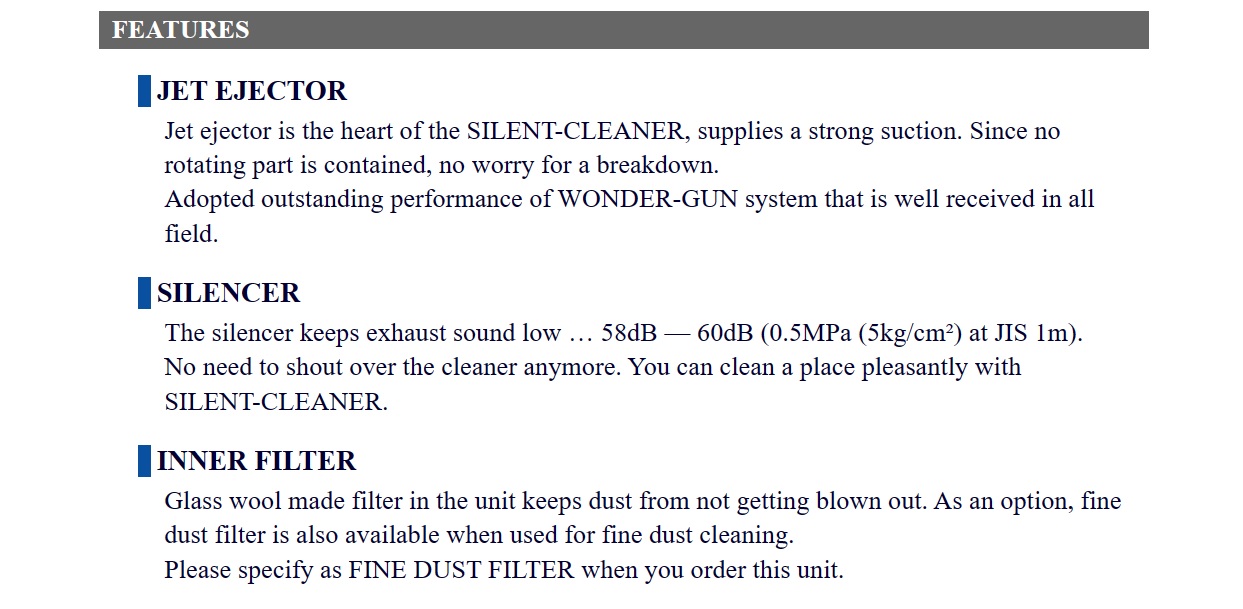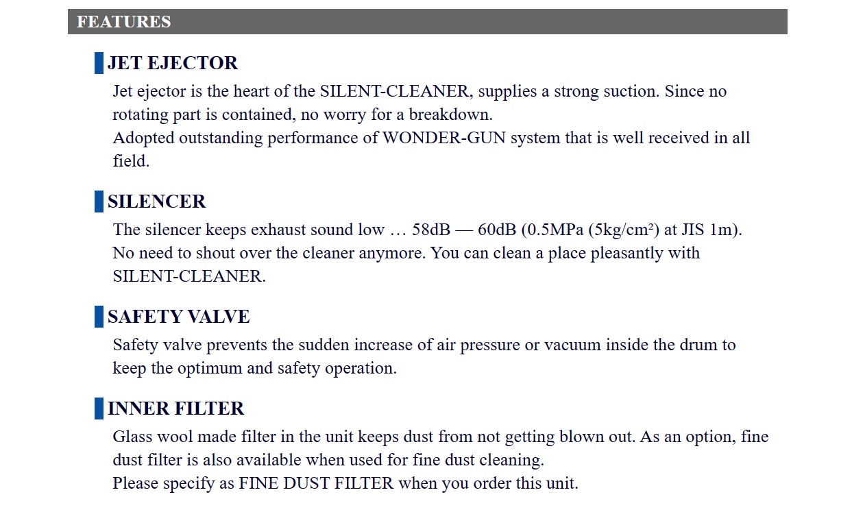 Osawa Silent Cleaner, For Dust (Except Powder), For Fine Dust / Powder, For High Viscosity Fluid