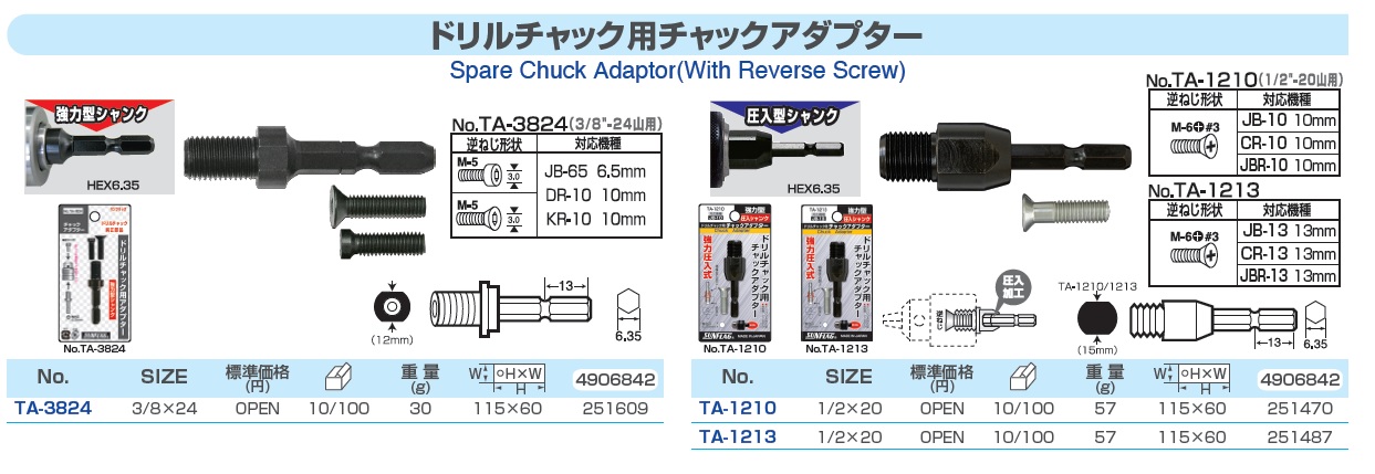 Code : JB-40, JB-65, JB-10, JB-13, CR-10, CR-13, JB-55, JBH-10, TA-3824, TA-3825, TA-1210, TA-121
