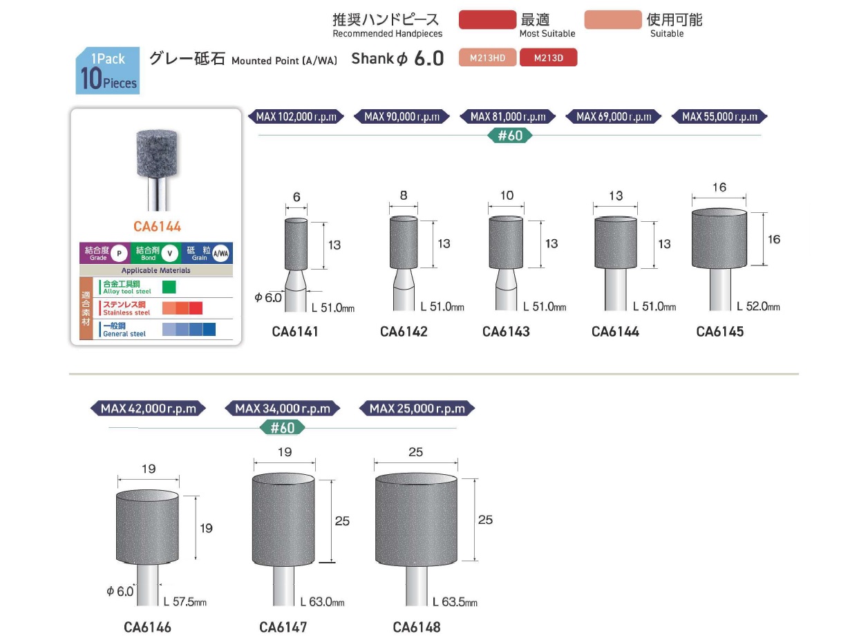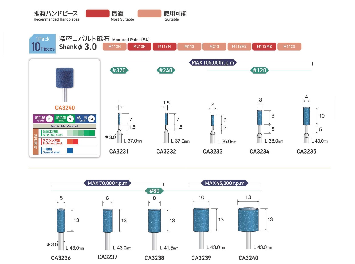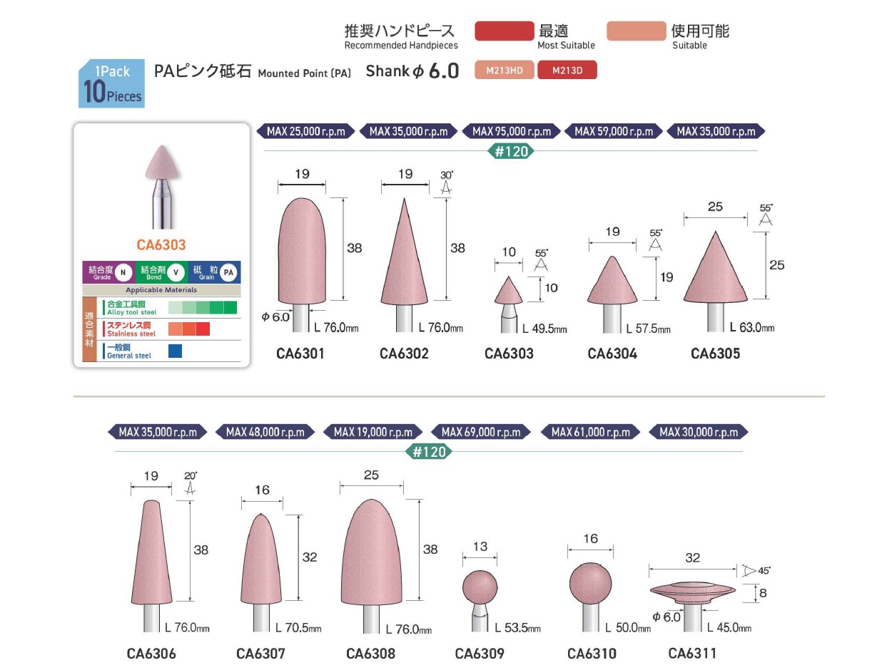 Minimo Mounted Points, Mounted Point(SPH), Mounted Point(PA), Mounted Point(GC), Mounted Point(A), Mounted Point(A/WA), Mounted Point(SPH), Grain SP, Mounted Point(SA), Long Shaft Mounted Point(WA)