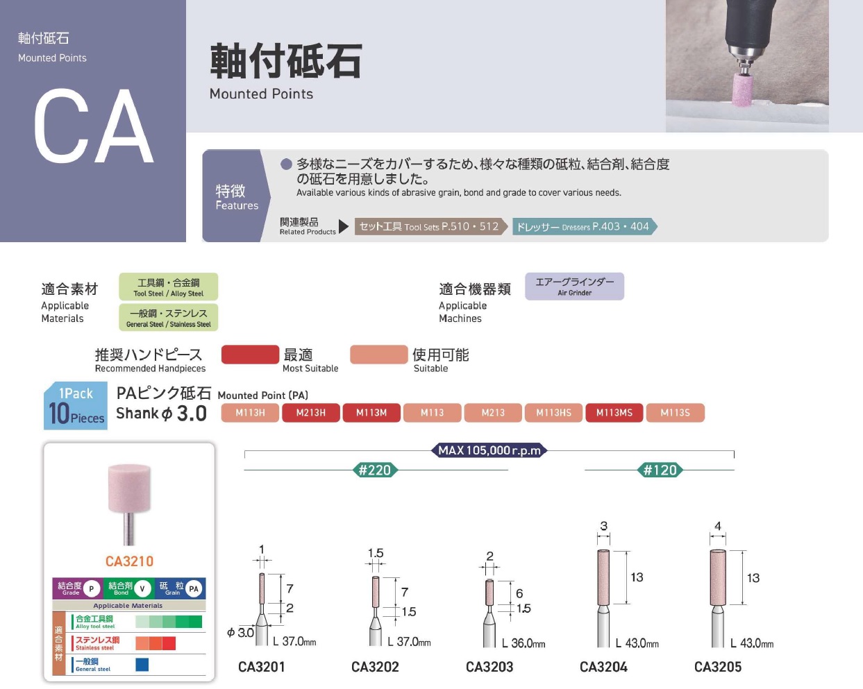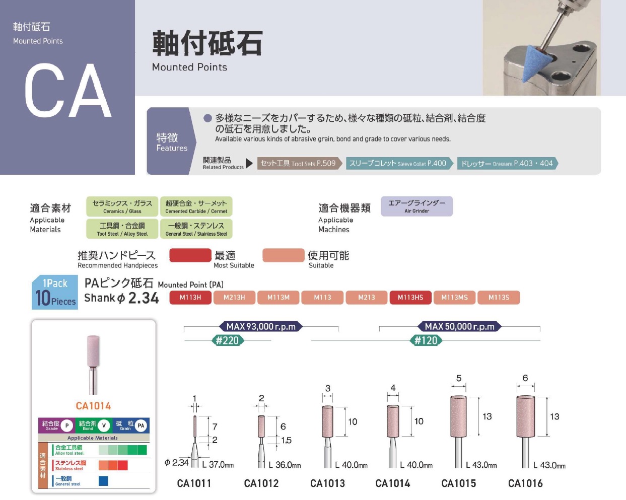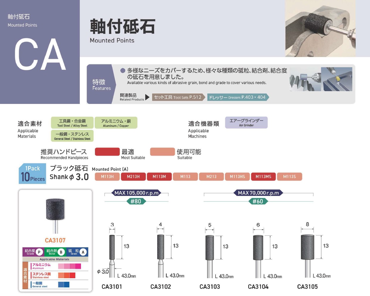 Minimo Mounted Points, Mounted Point(SPH), Mounted Point(PA), Mounted Point(GC), Mounted Point(A), Mounted Point(A/WA), Mounted Point(SPH), Grain SP, Mounted Point(SA), Long Shaft Mounted Point(WA)