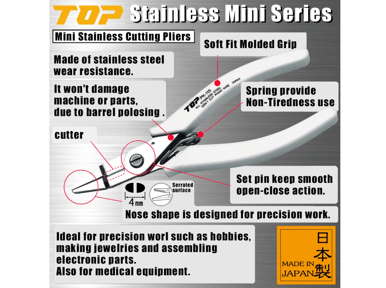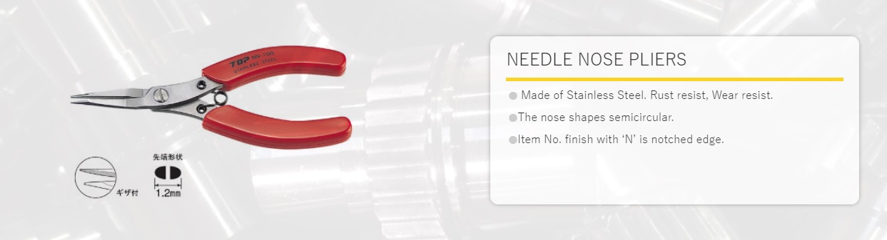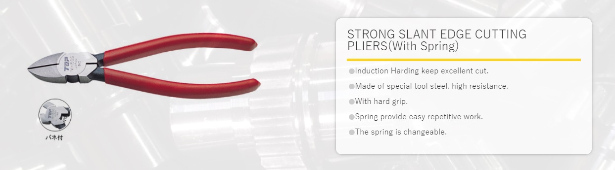 Tool Tools Handy Convertible Pliers, Wrench Pliers (With Spring), Vise Pliers, Lock Ring Pliers, Three-Ply Water Pump Pliers (With slotted screwdriver), Water Pump Pliers, Straight Snap Ring Pliers Shaft Type (for Shaft Straight nose), Bent Snap Ring Pliers Shaft Type, Straight Snap Ring Pliers Hole Type, Bent Snap Ring Pliers Hole Type (for hole. Bent nose), Needle Nose Pliers, Bent Needle Nose Pliers, Plat Nose Pliers, Round Nose Pliers, Electro Cutting Pliers, Flat Nose Cutting Pliers, Mini Cutting Pliers, Micro Cutting Pliers, Plastic Cutting Pliers, Electro Cutting Pliers, Mini Flat Nose Cutting Pliers (Stainless Steel Mini Radio Pliers), 3 Layered Cutting Plier, 3 Layered Flat Nose Cutting Pliers, 3 Layered Cutting Pliers (for Plastic), 3 Layered Diagonal Edge Cutting Pliers, Side Cutting Pliers (With Formed Grip), Side Cutting Pliers (With Vinyl grip), Side Cutting Pliers, Booster Side Cutting Pliers, Strong Slant Edge Cutting Pliers (with Spring), Strong Slant Edge Pliers, Eccentric Slant Edge Cutting Pliers (Flat Nose), Long Nose Pliers, Long Nose Pliers S Type (with spring), Power Cutting Pliers, Slant Cutting Pliers, Plastic Cutting Pliers (Slant flat edge), Boost Wire Clamp Cutter