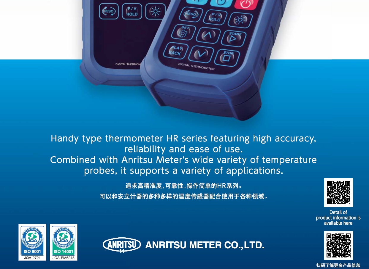 Anritsu Handheld Thermometer, HR series Lineup, Basic model, Standard model, High function model, LED display model, Memory model