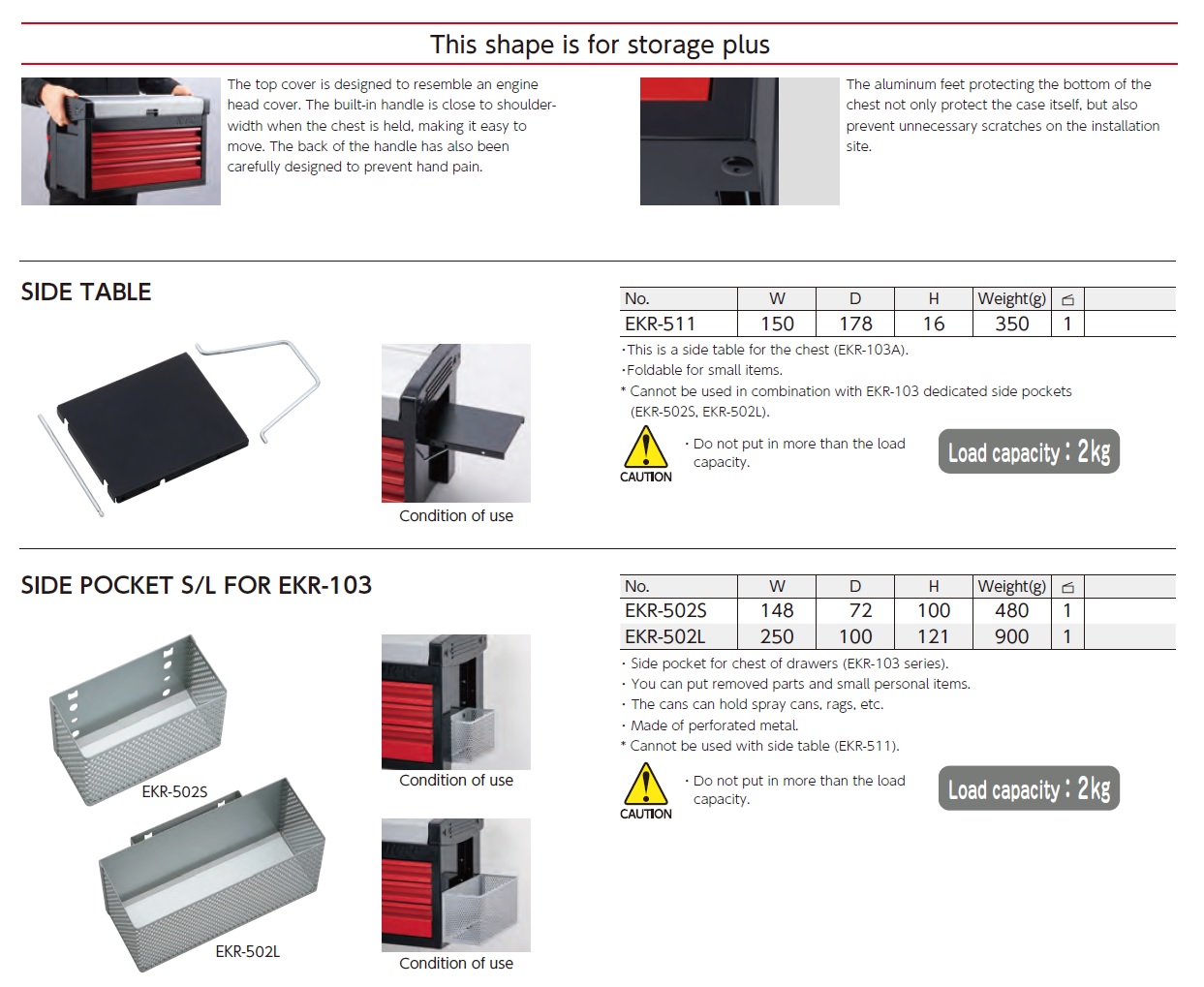 KTC, Chest (4 Stages, 4 Drawers ), Flat Chest (3 Stages, 3 Drawers ), Side Table, Side Pocket