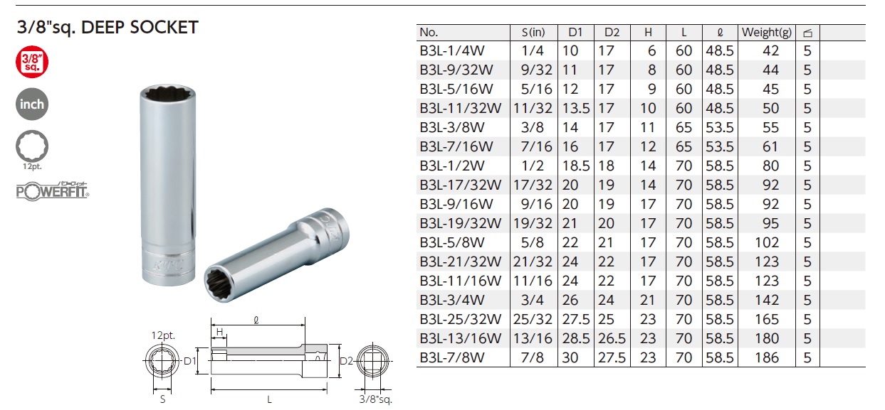 KTC Deep Socket, Long Deep Socket Set, Long Deep Socket