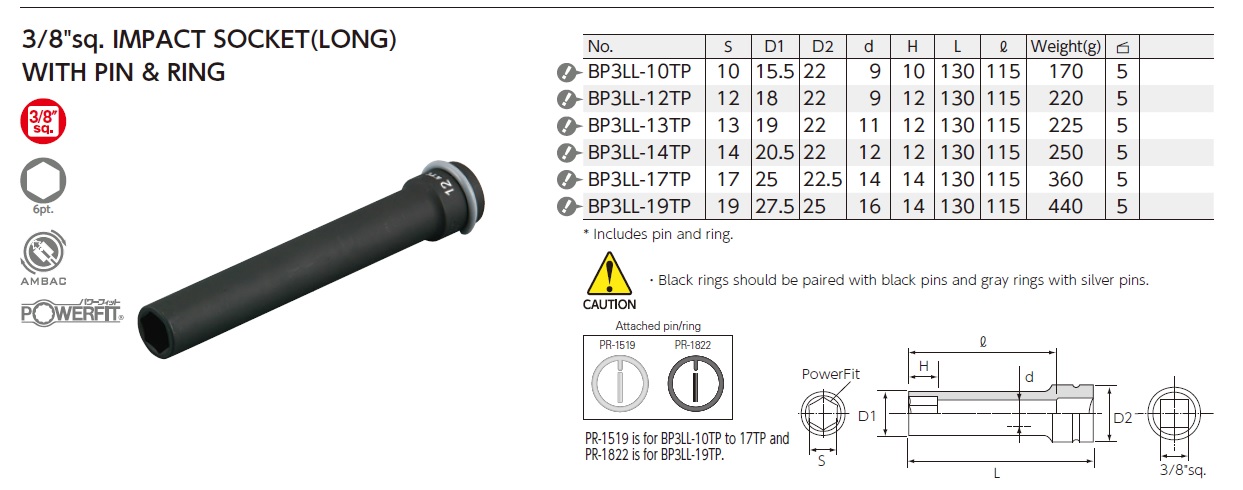 KTC Impact Socket (Deep) With Pin & Ring, Impact Socket (Deep), Impact Socket (Long) With Pin & Ring