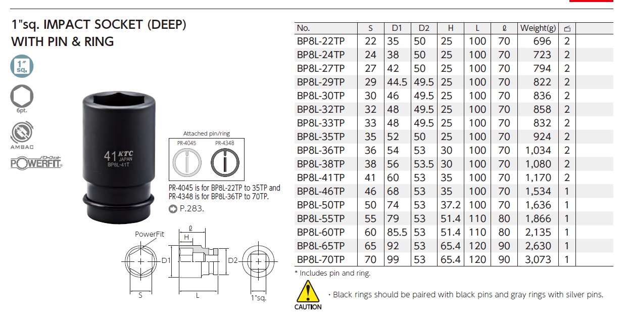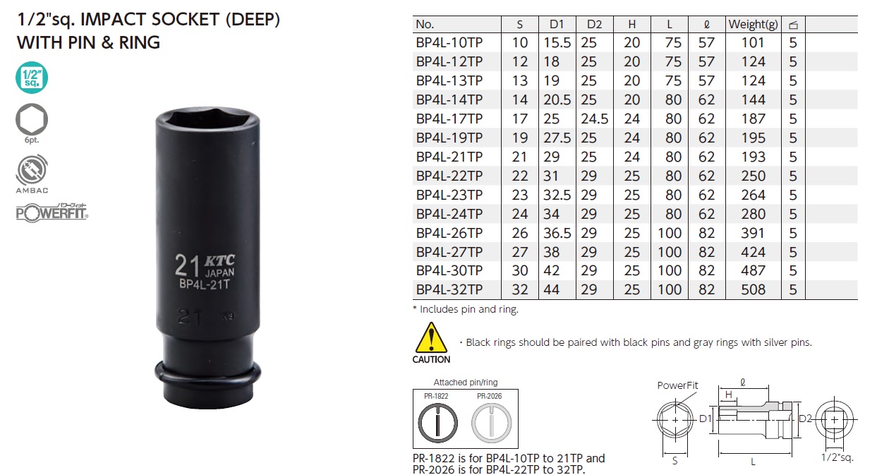 KTC Impact Socket (Deep) With Pin & Ring, Impact Socket (Long) With Pin & Ring