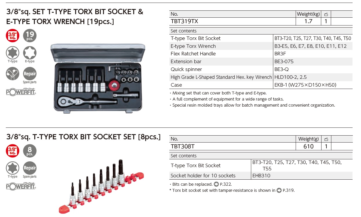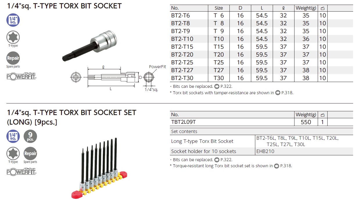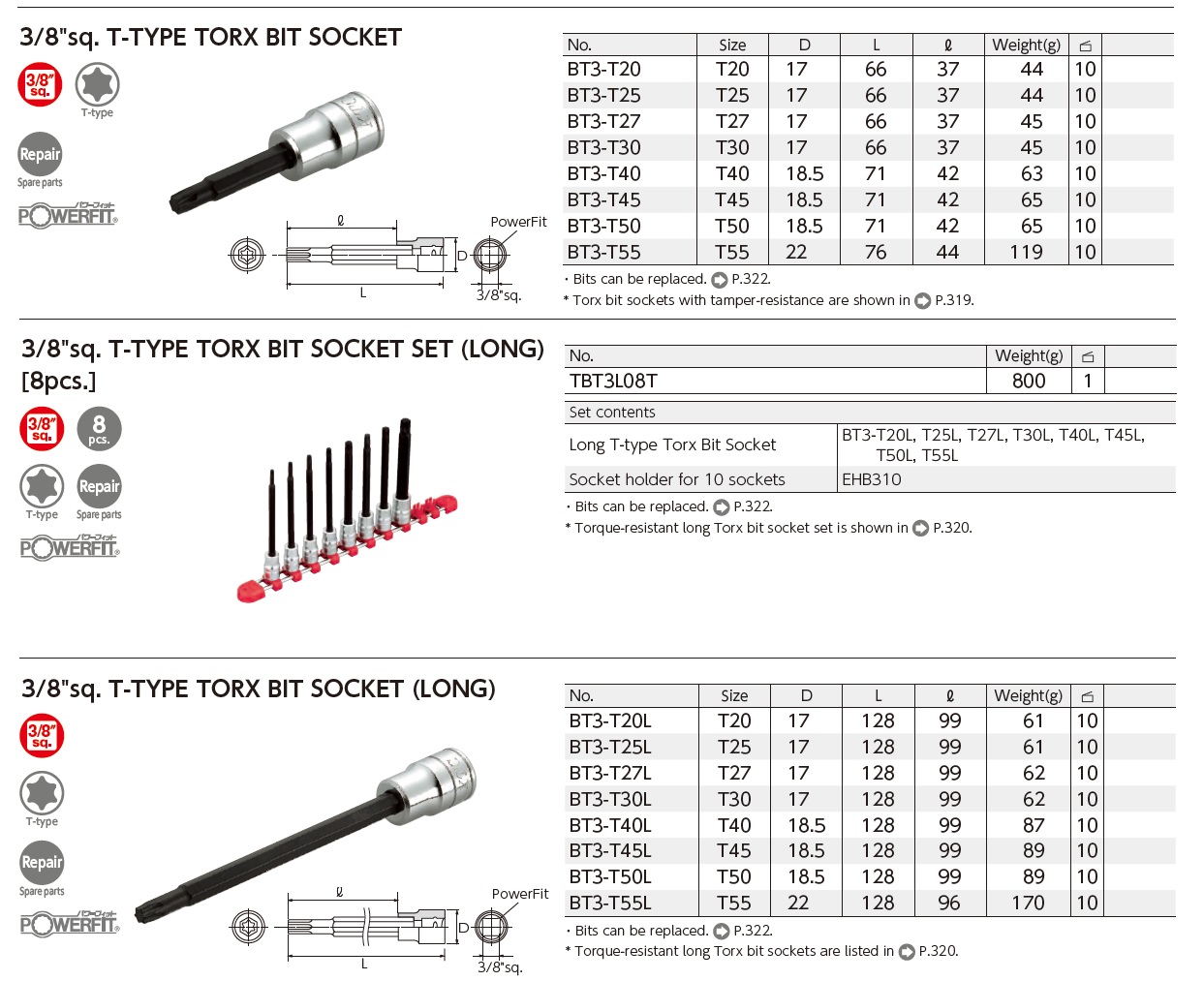 KTC T-Type Torx Bit Socket, T-Type Torx Bit Socket Set (Long), T-Type Torx Bit Socket (Long), T-Type Torx Bit Socket Set (Short), Set T-Type Torx Bit Socket & E-Type Torx Wrench