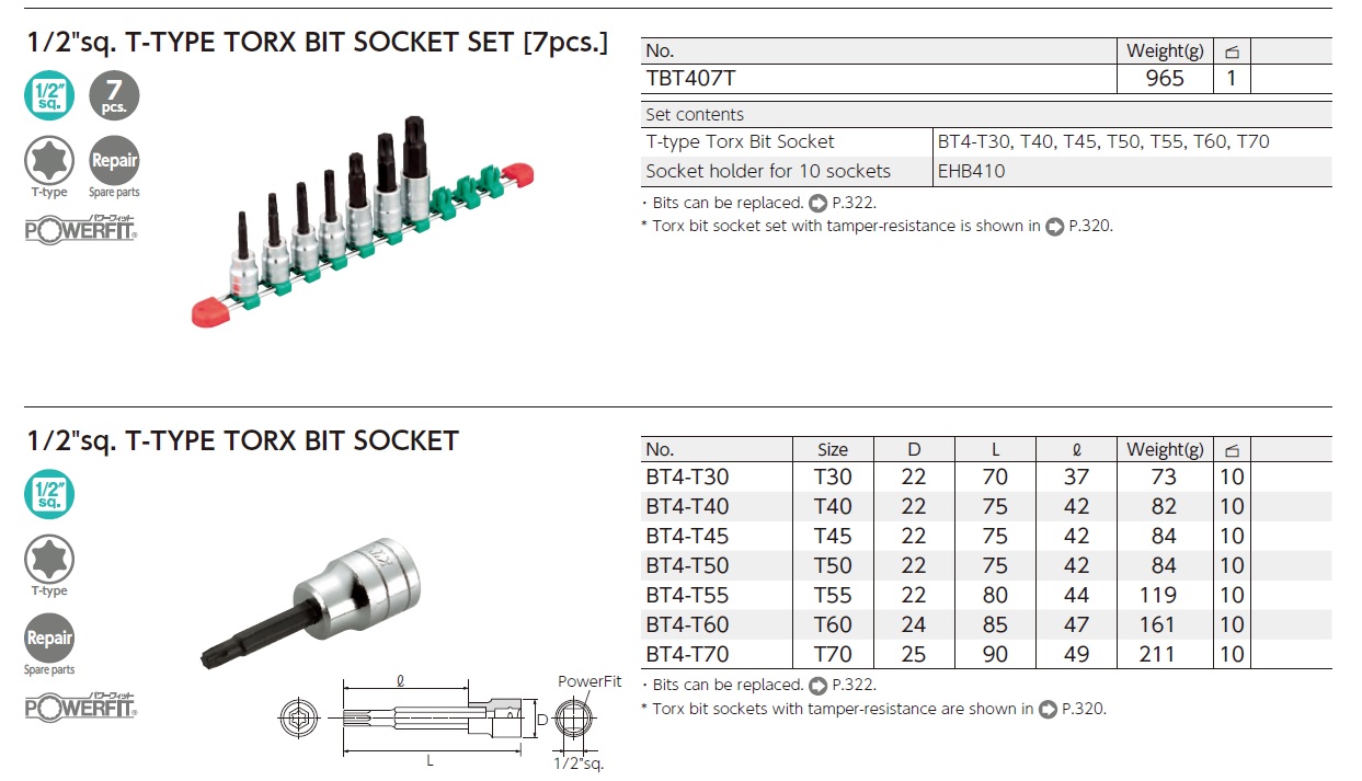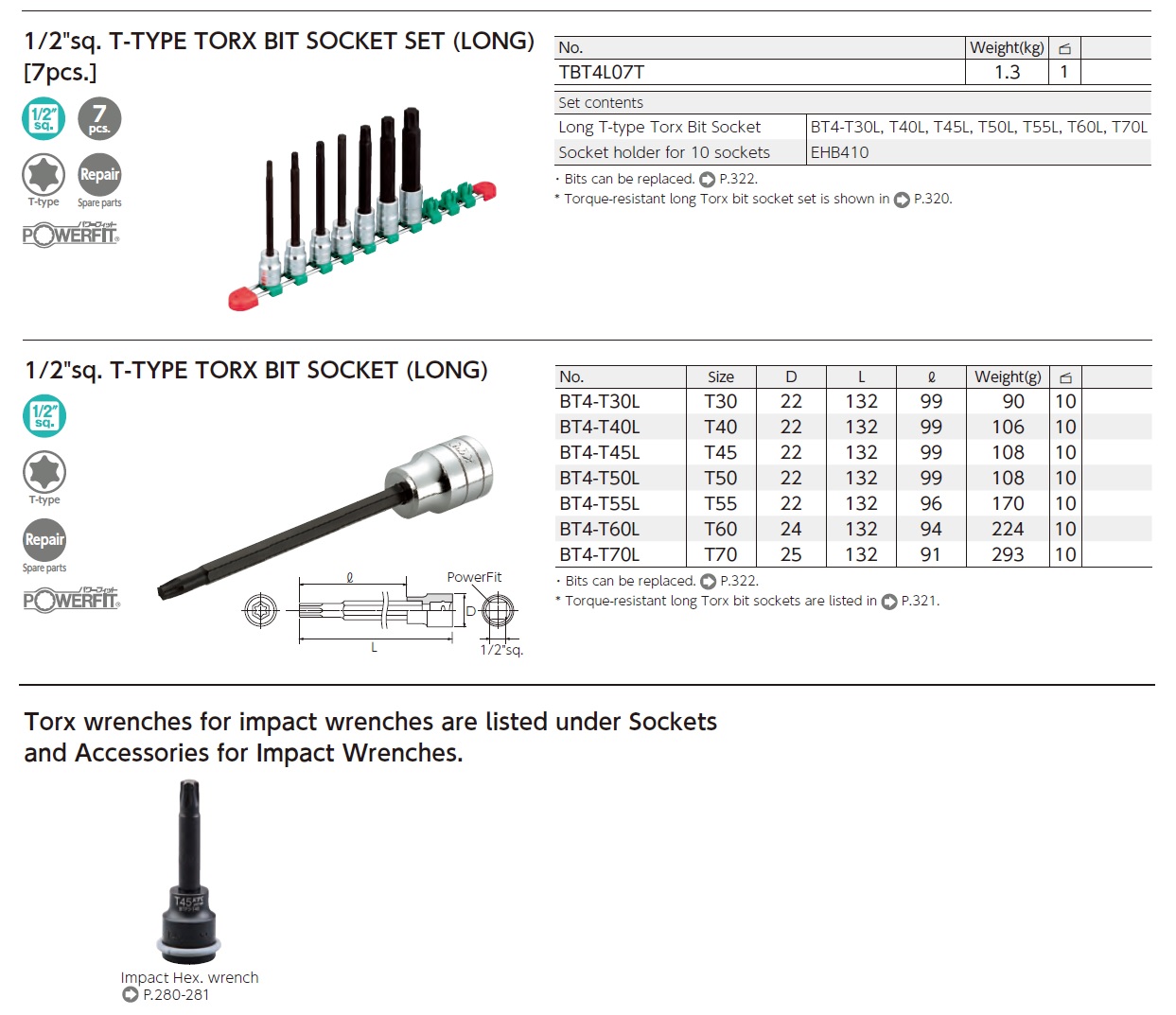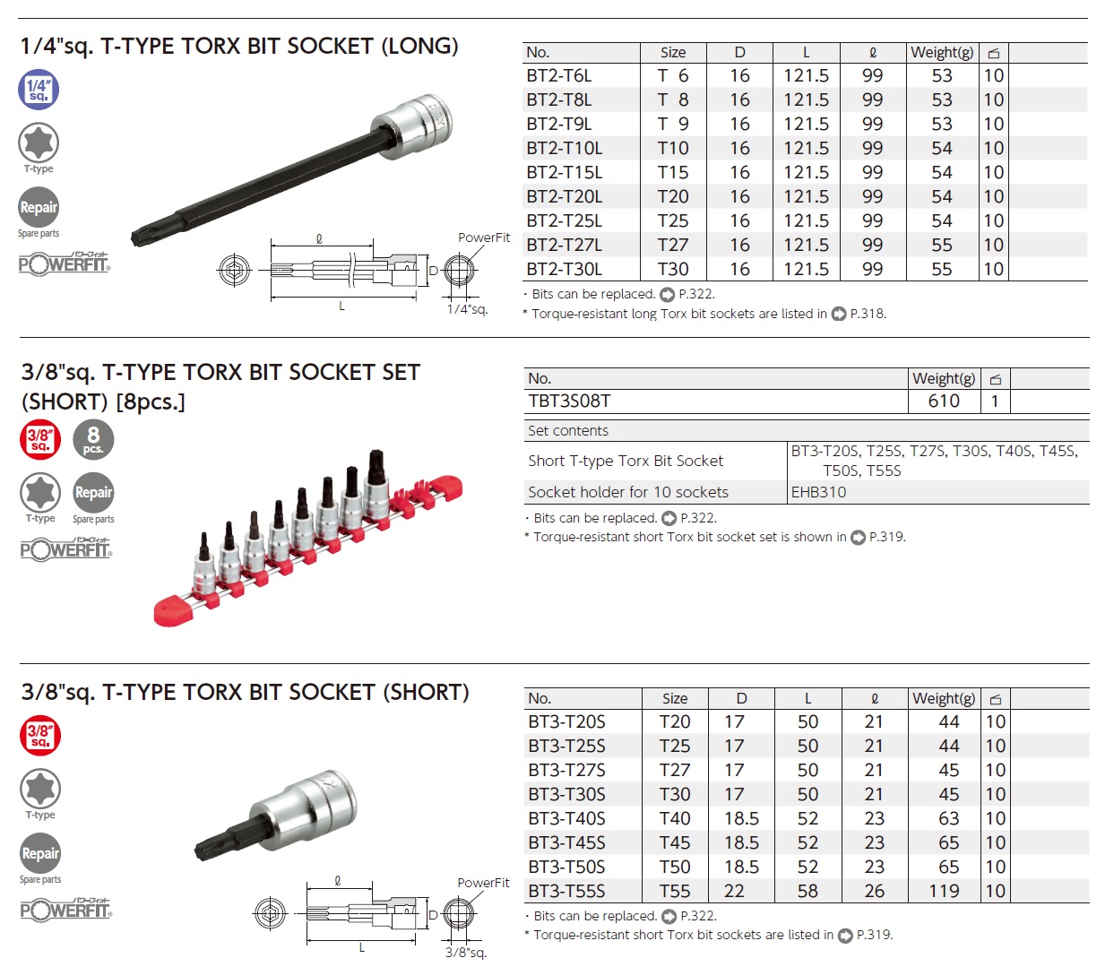 KTC T-Type Torx Bit Socket, T-Type Torx Bit Socket Set (Long), T-Type Torx Bit Socket (Long), T-Type Torx Bit Socket Set (Short), Set T-Type Torx Bit Socket & E-Type Torx Wrench