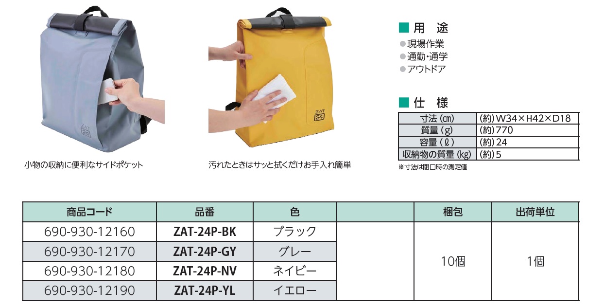 Code : ZAT-24P-BK, ZAT-24P-GY, ZAT-24P-NV, ZAT-24P-YL Brand : Jappy