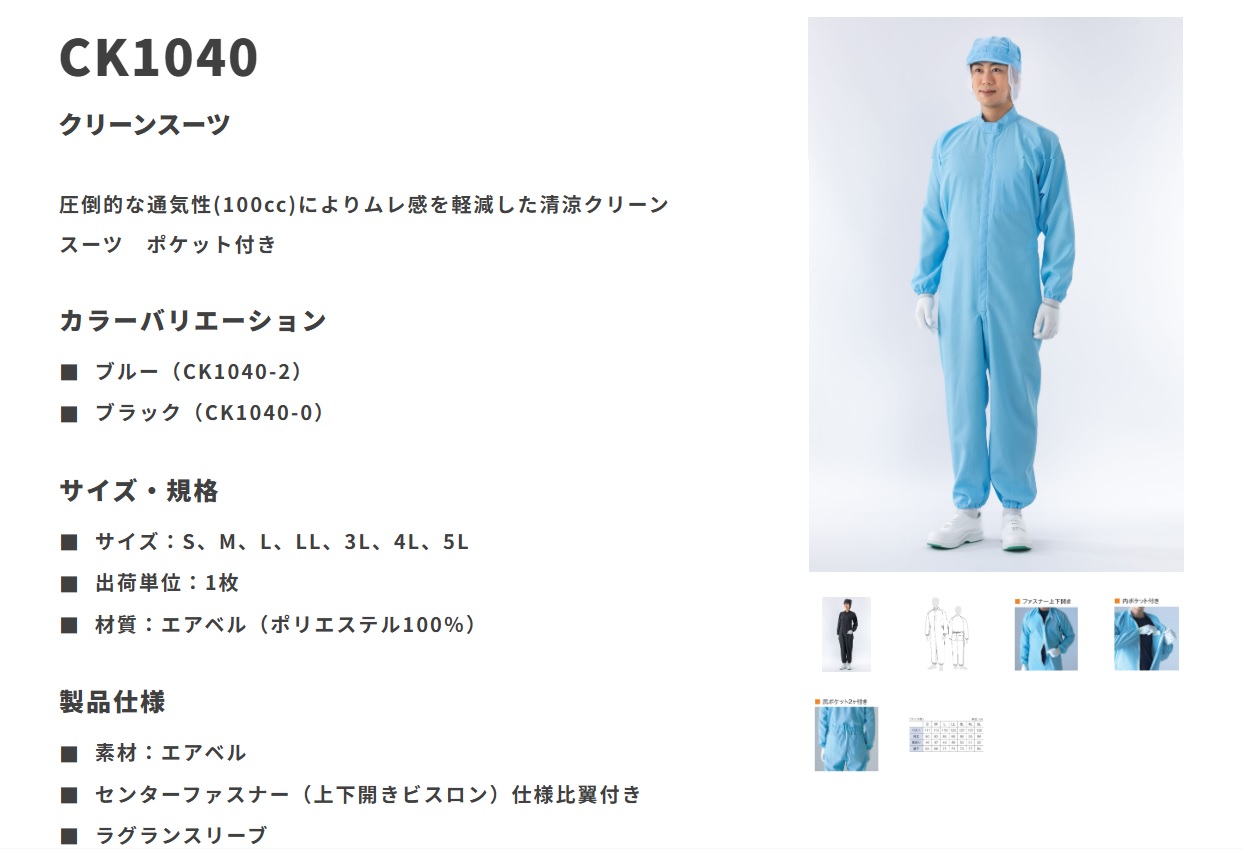 Blue (CK1040-2), Black (CK1040-0), Sizes: S, M, L, LL, 3L, 4L, 5L