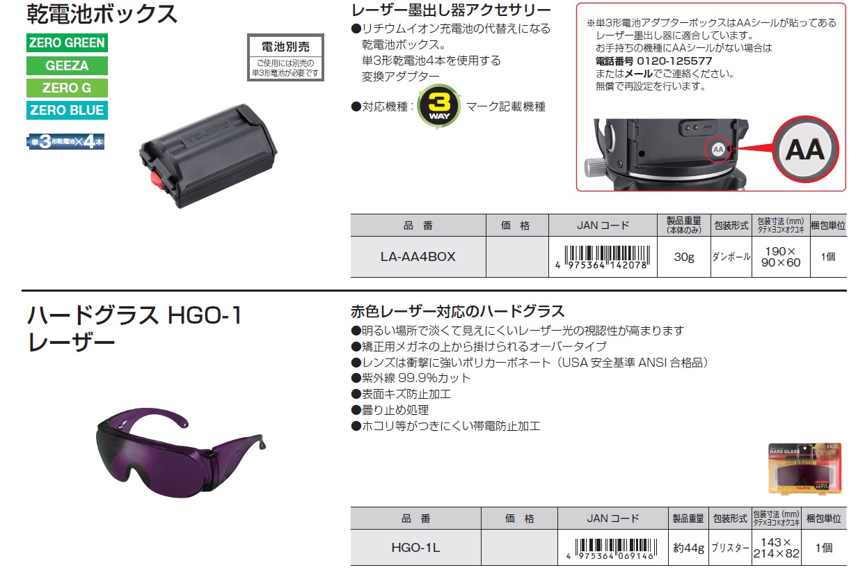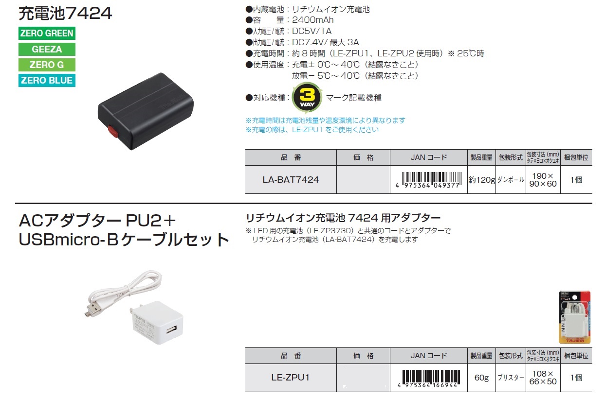 Code : LA-BAT7424, LE-ZPU1, LA-AA4BOX, HGO-1L Brand : Tajima