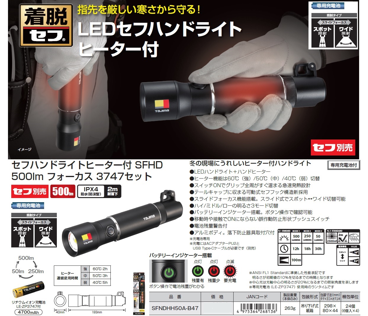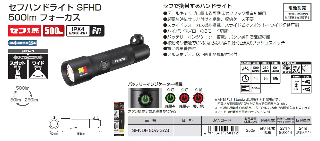 Tajima LED Hand Light, Safety Hand Light Heater, Handlight, Tail Cap for LED Hand Light, Rechargeable Battery