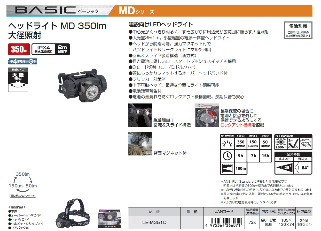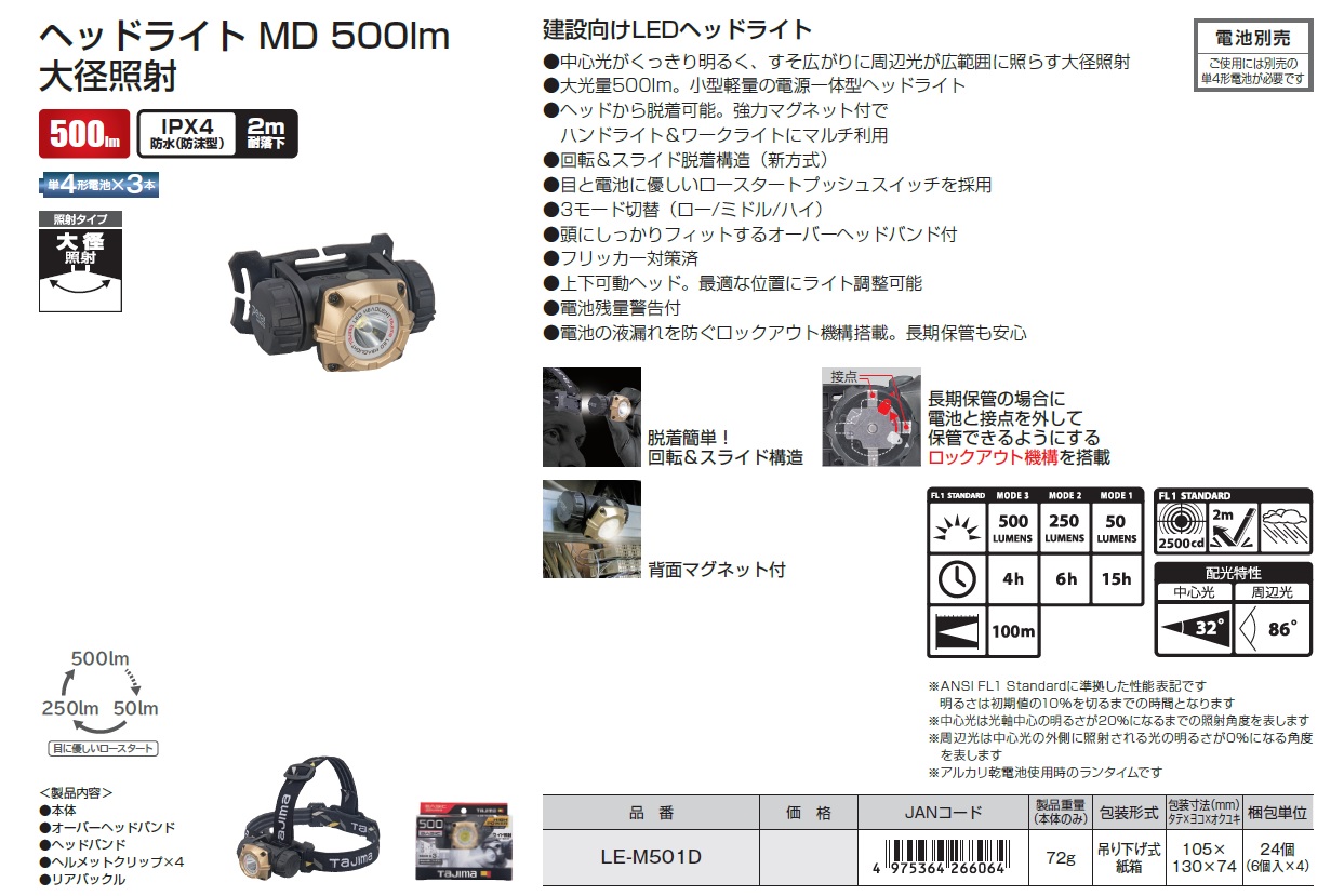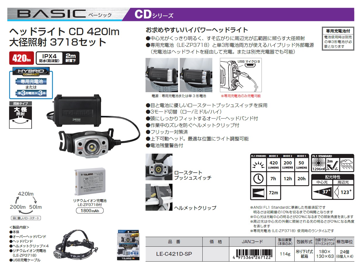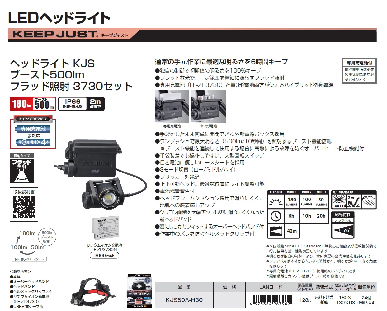 Tajima LED Headlight, Rechargeable Battery, AC adapter, USB Charging Cable, Lithium-ion Battery