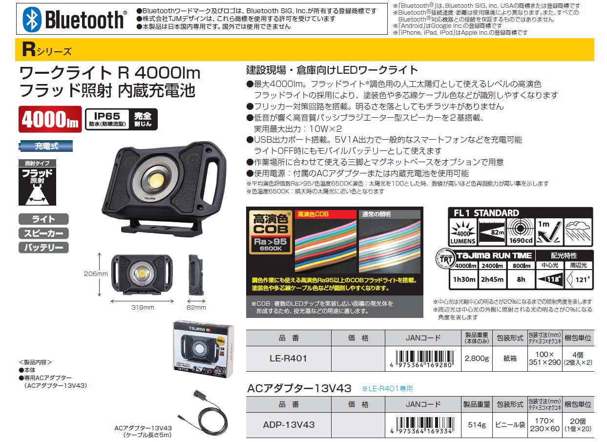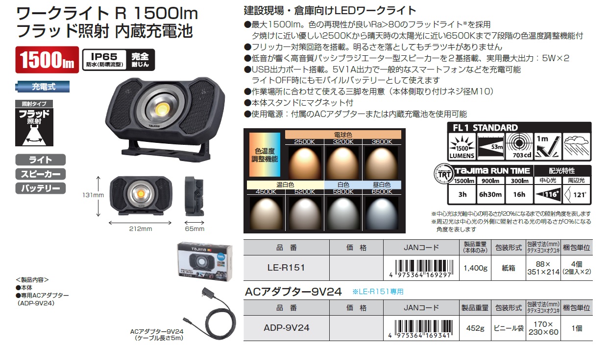 Tajima LED Work Lights, AC adapter, Magnetic Base, USB Charging Cable, LED Work Light Tripod