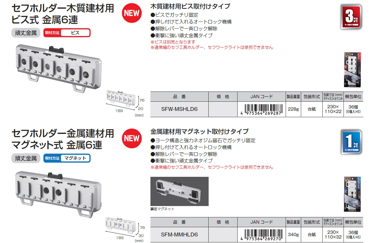 Code : SFW-MSHLD6, SFM-MMHLD6, SFR-MCHLD6, SFS-MCHLD6 Brand : Tajima