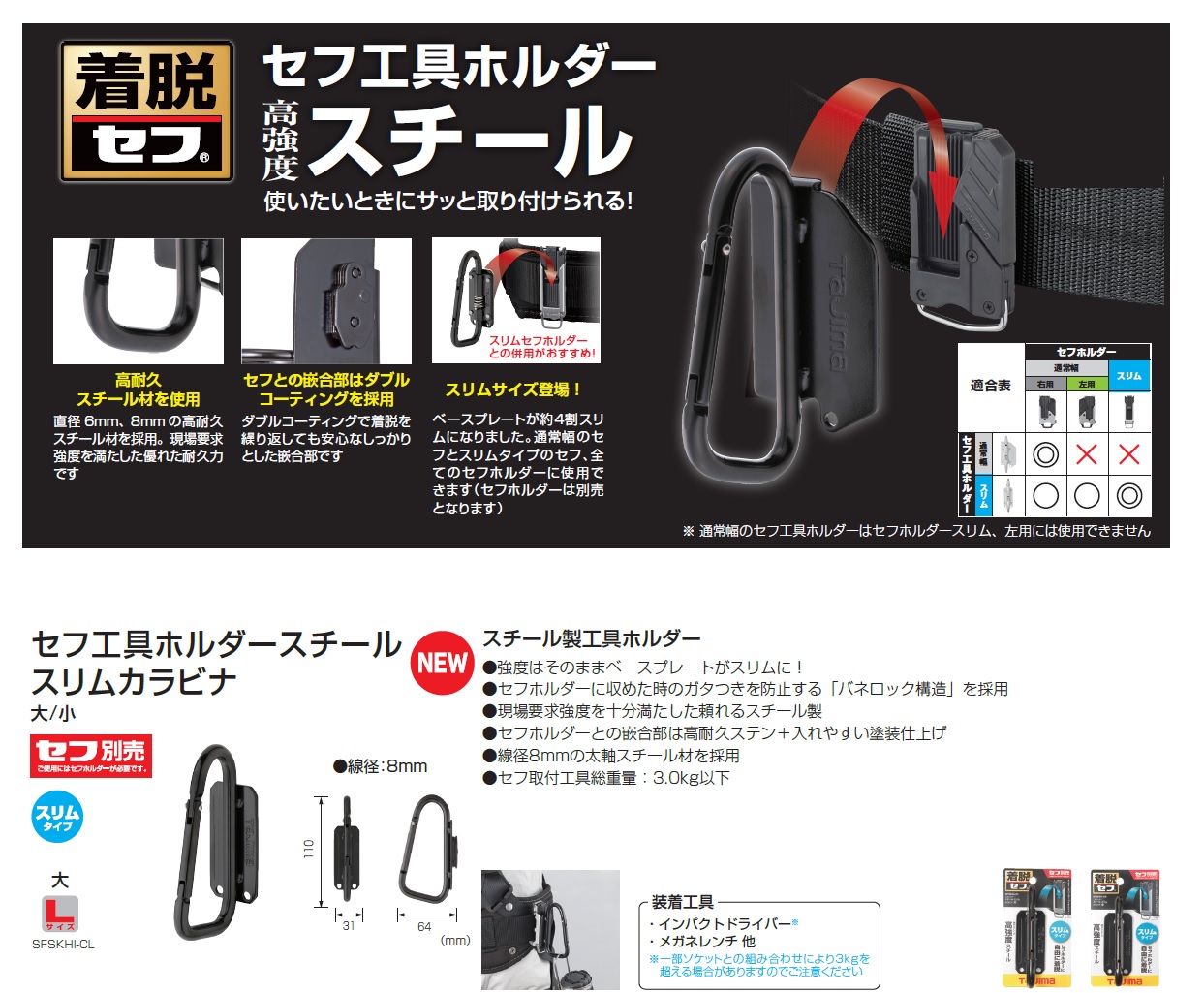Tajima Safe System Safe Tool Holder, Steel Tool Holder, Tools Detachable Tool Holder Steel Hammer Holder, Removable Tool Holder, Steel Waist Tool Holder Hammer, Tool Holder High Strength Steel Hammer, Steel Tool Holder, Steel Waist Tool Holder Drift Pin, Ssfe Tool Holder Plastic Slim Carabiner