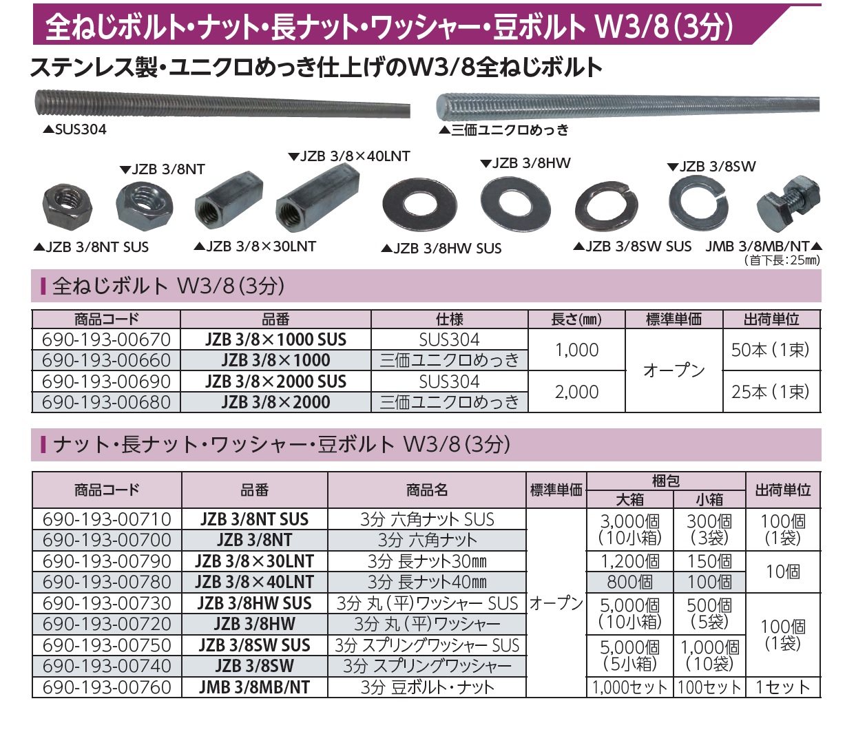 Code : JZB 3/8 X1000 SUS, JZB 3/8X1000, JZB 3/8X2000 SUS, JZB 3/8X2000, JZB 3/8NT SUS, JZB 3/8NT, JZB3/8X30LNT, JZB 3/8X40LNT, JZB 3/8HWSUS, JZB 3/8HW, JZB3/8SWSUS, JZB3/8SW, JMB3/8MB/NT, ZC3-W-JP