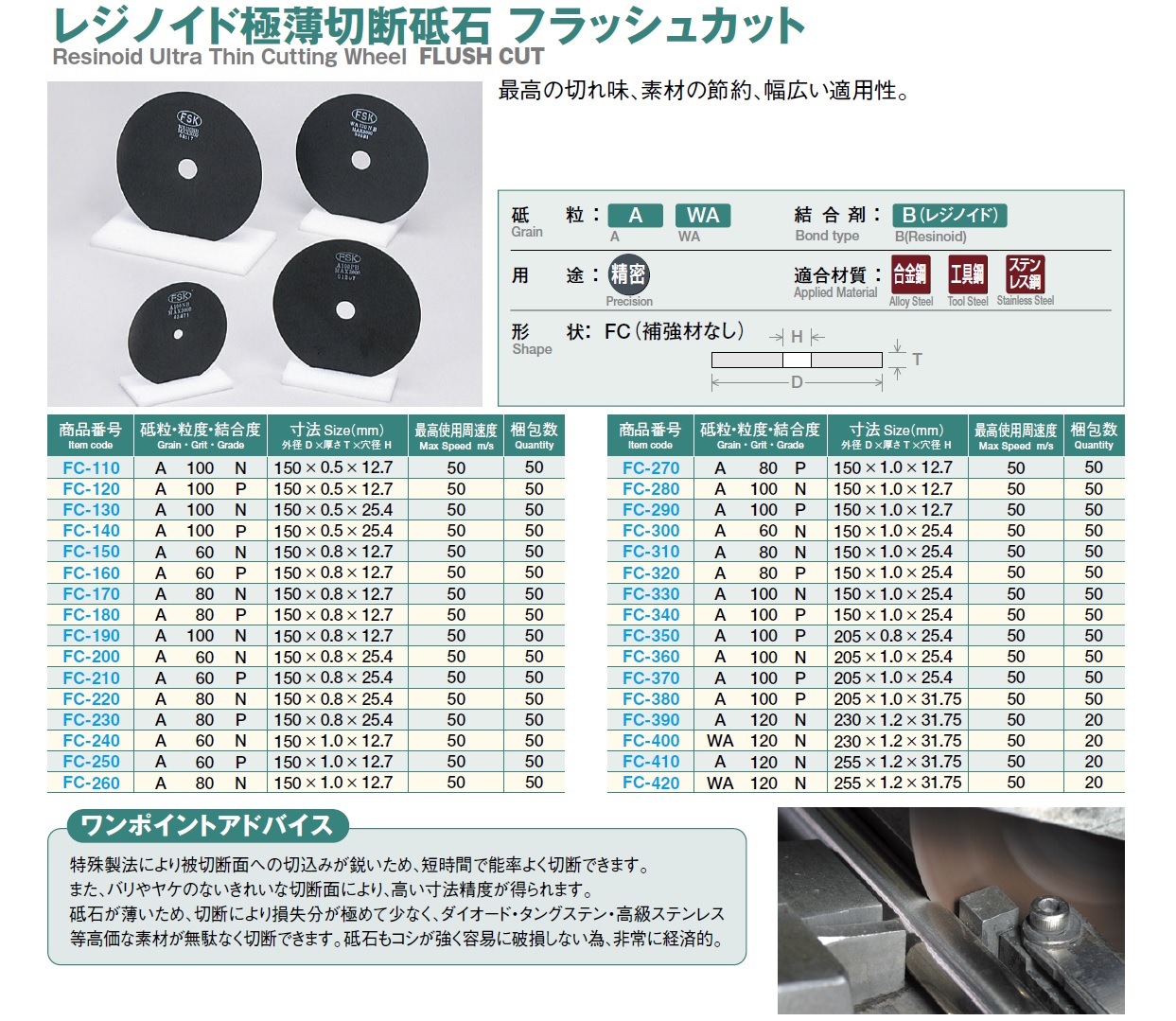 FSK Resinoid Ultra Thin Cutting Wheel Flush Cut