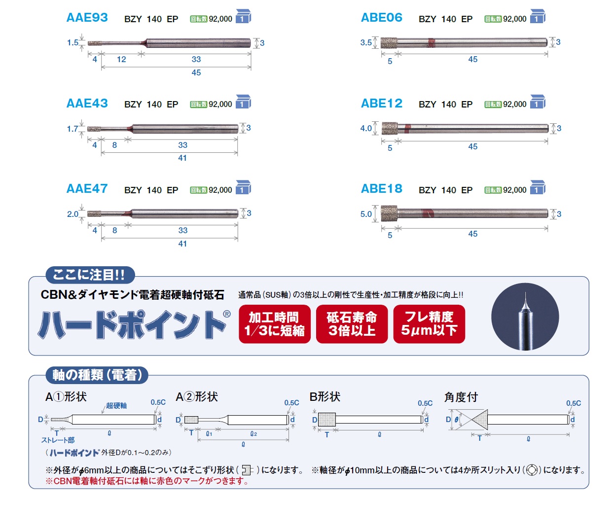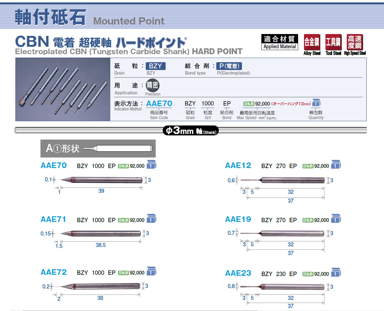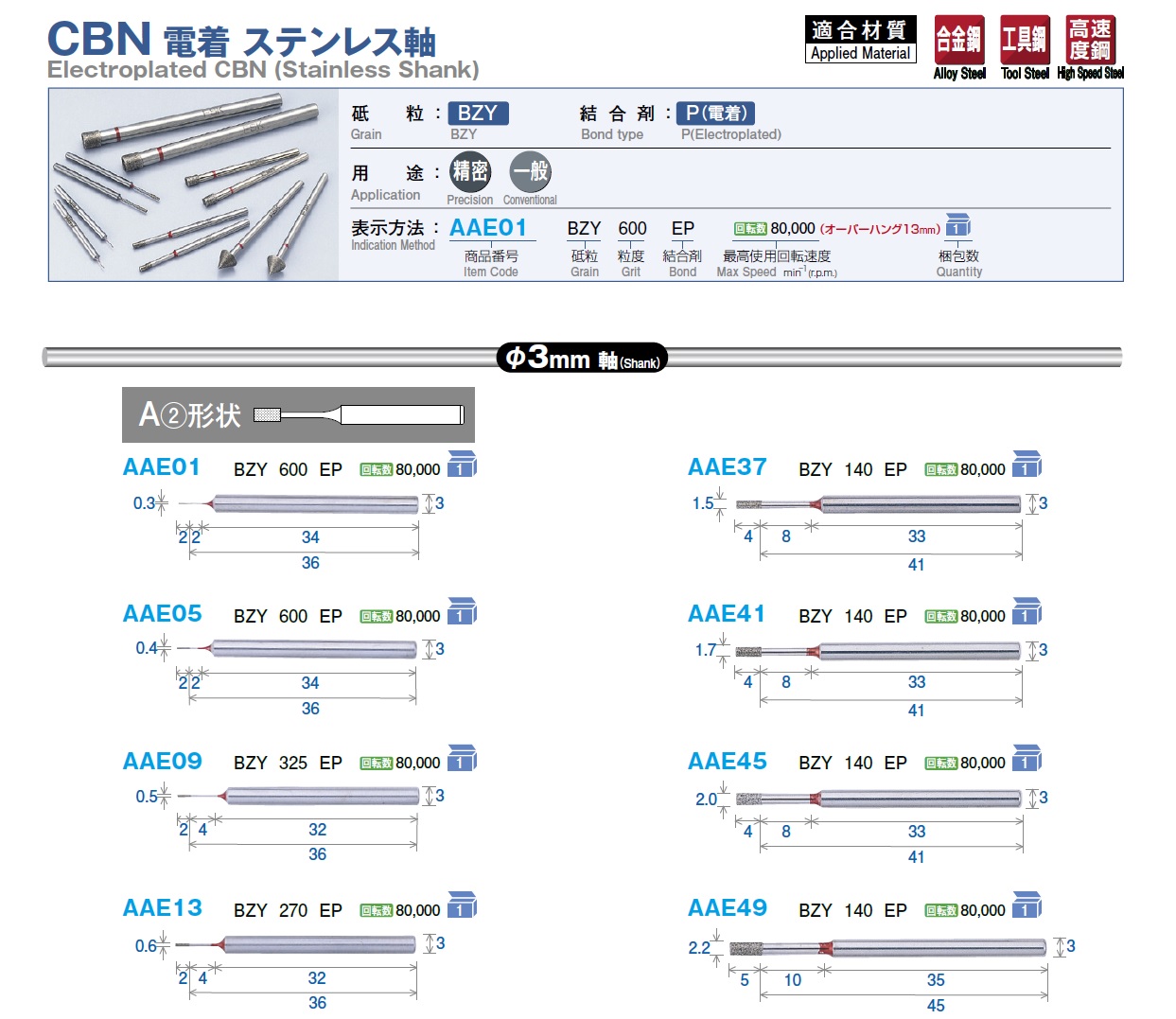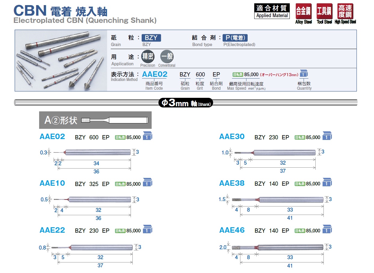 FSK Electroplalted CBN (Tungsten Carbide Shank) Hard Point, Clectroplated CBN (Stainless Shank), Electroplated CBN (Quenching Shank)